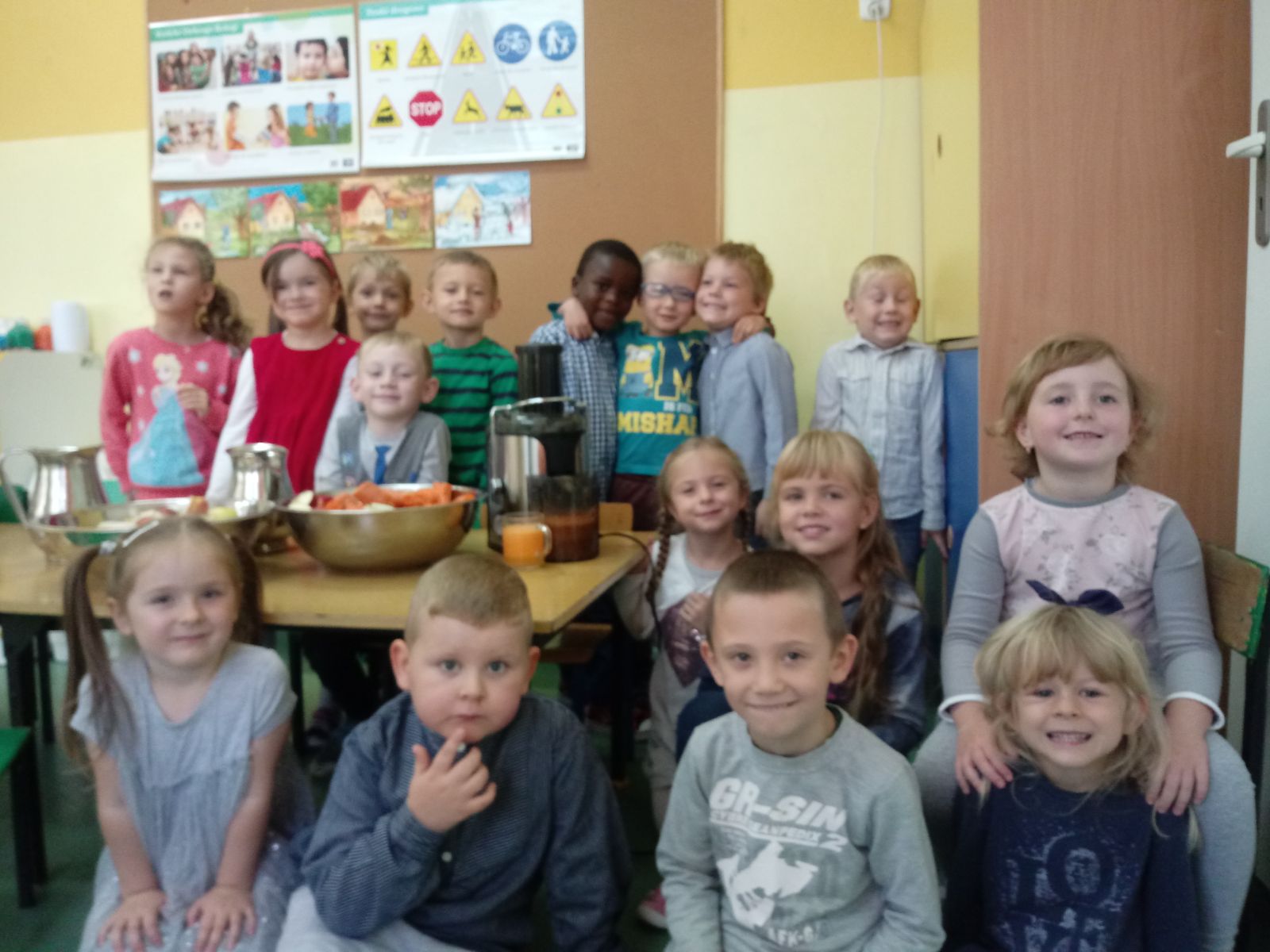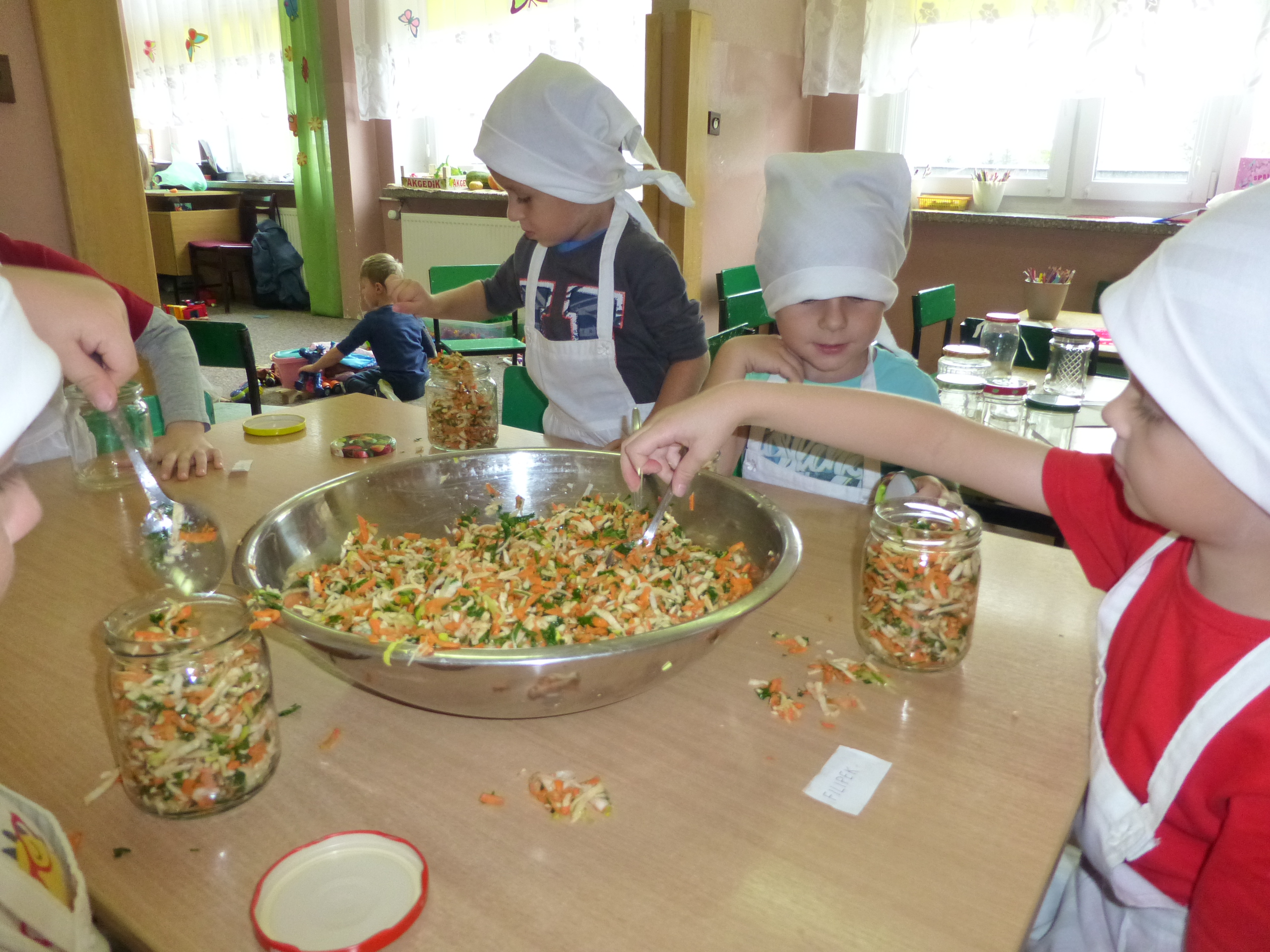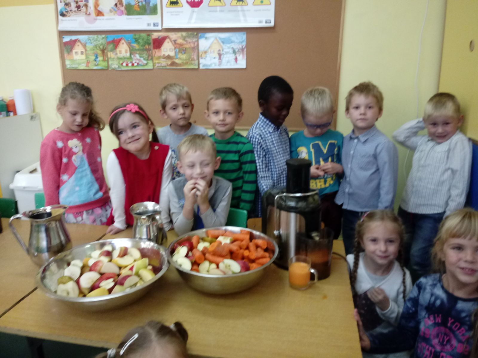 Przedszkolaki z naszego z naszego przedszkola uczyły się jak ważne jest spożywanie owoców i warzyw , a zwłaszcza tych z domowych zapasów.  Realizując temat kompleksowy dotyczący owoców i warzyw dzieci postanowiły zrobić soki i sałatkę.  Dzieci były bardzo dumne z samodzielnie wykonanych przetworów .