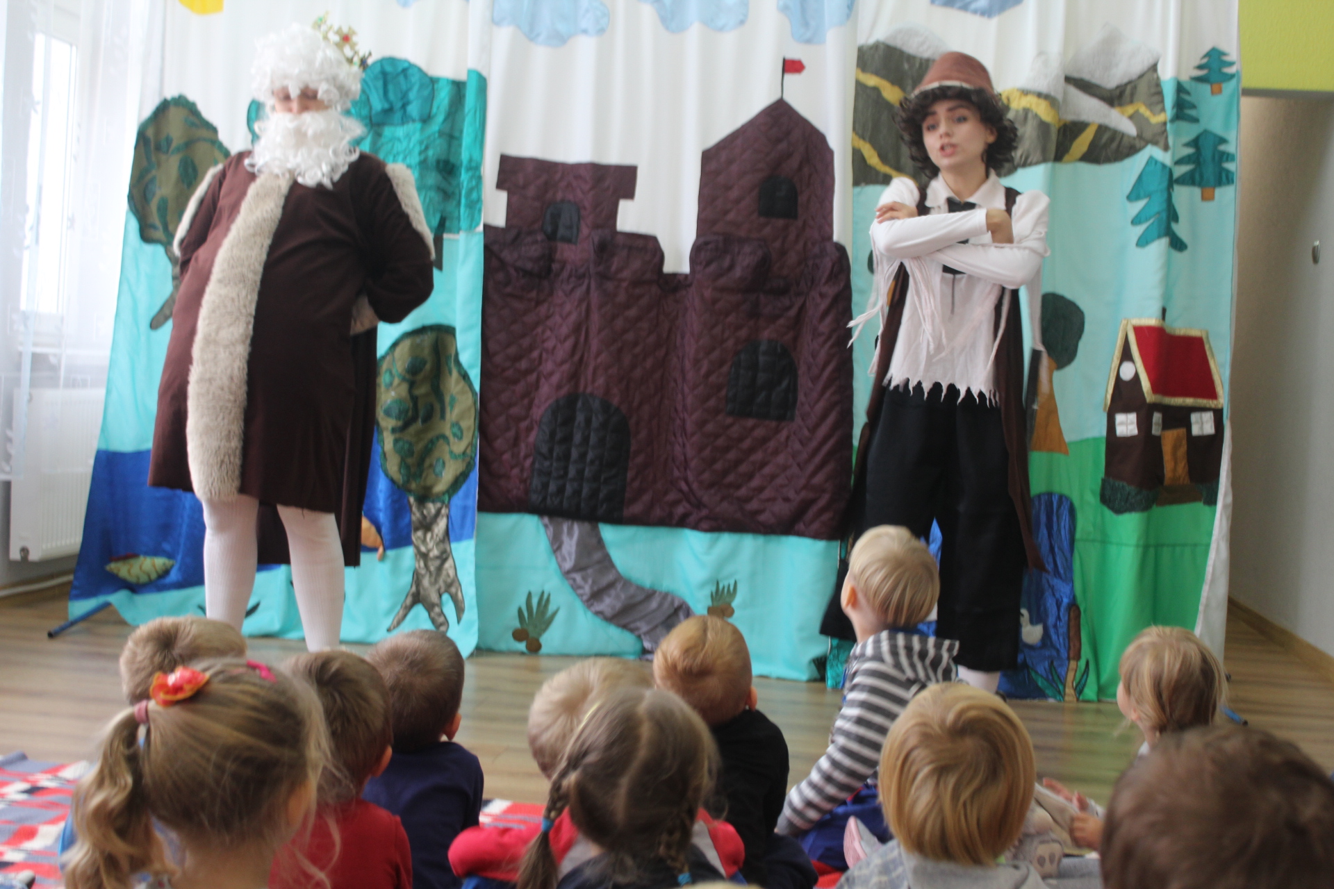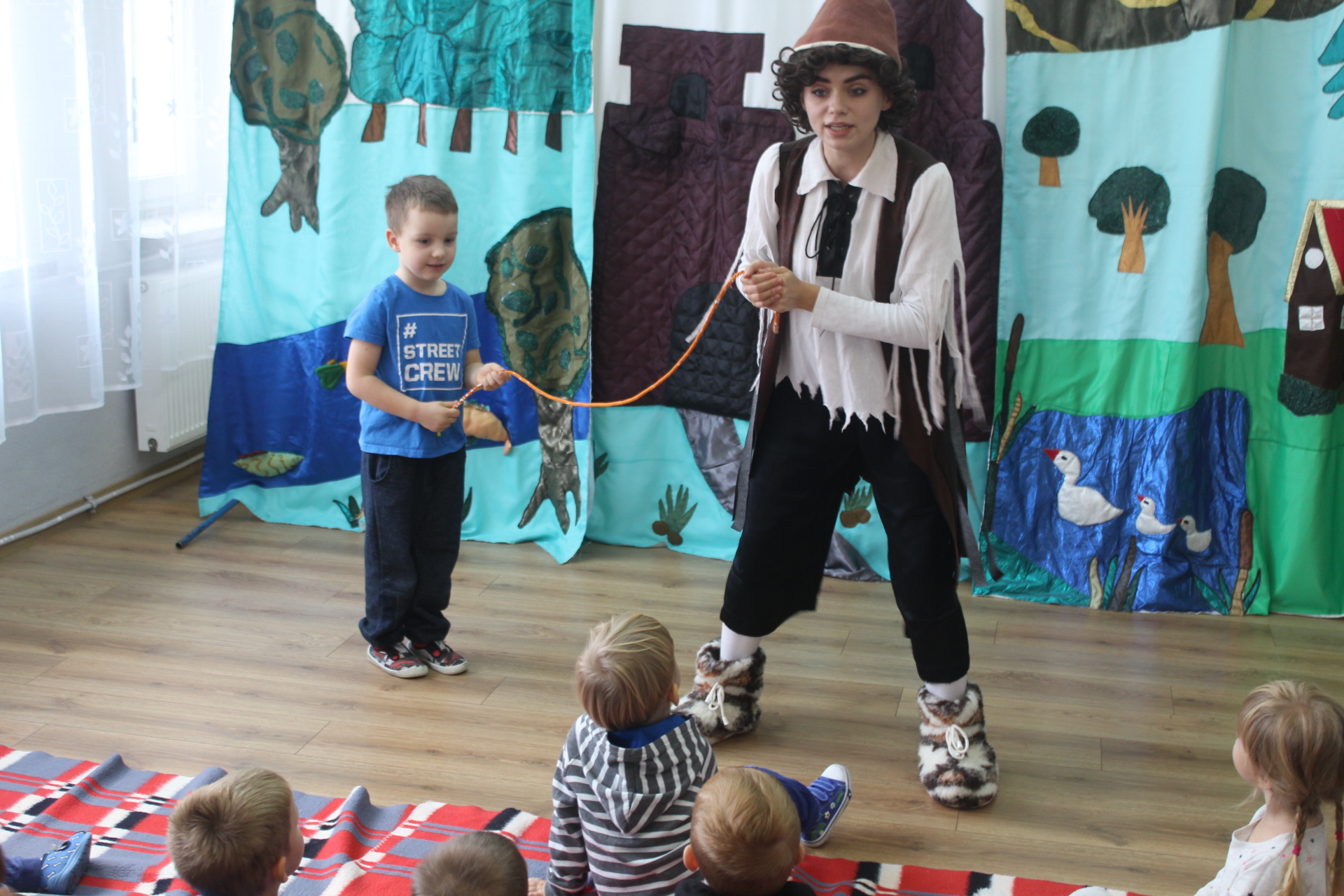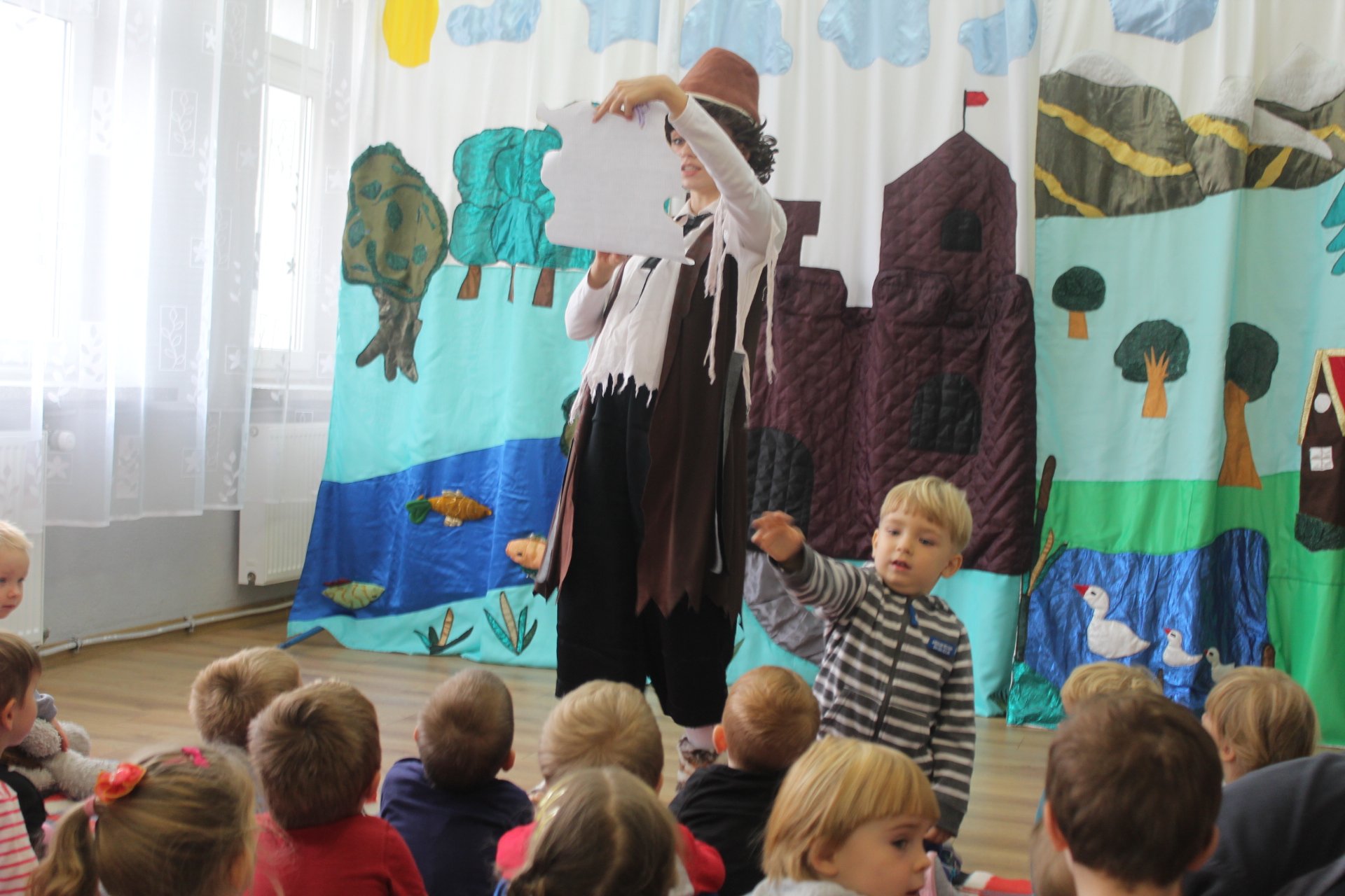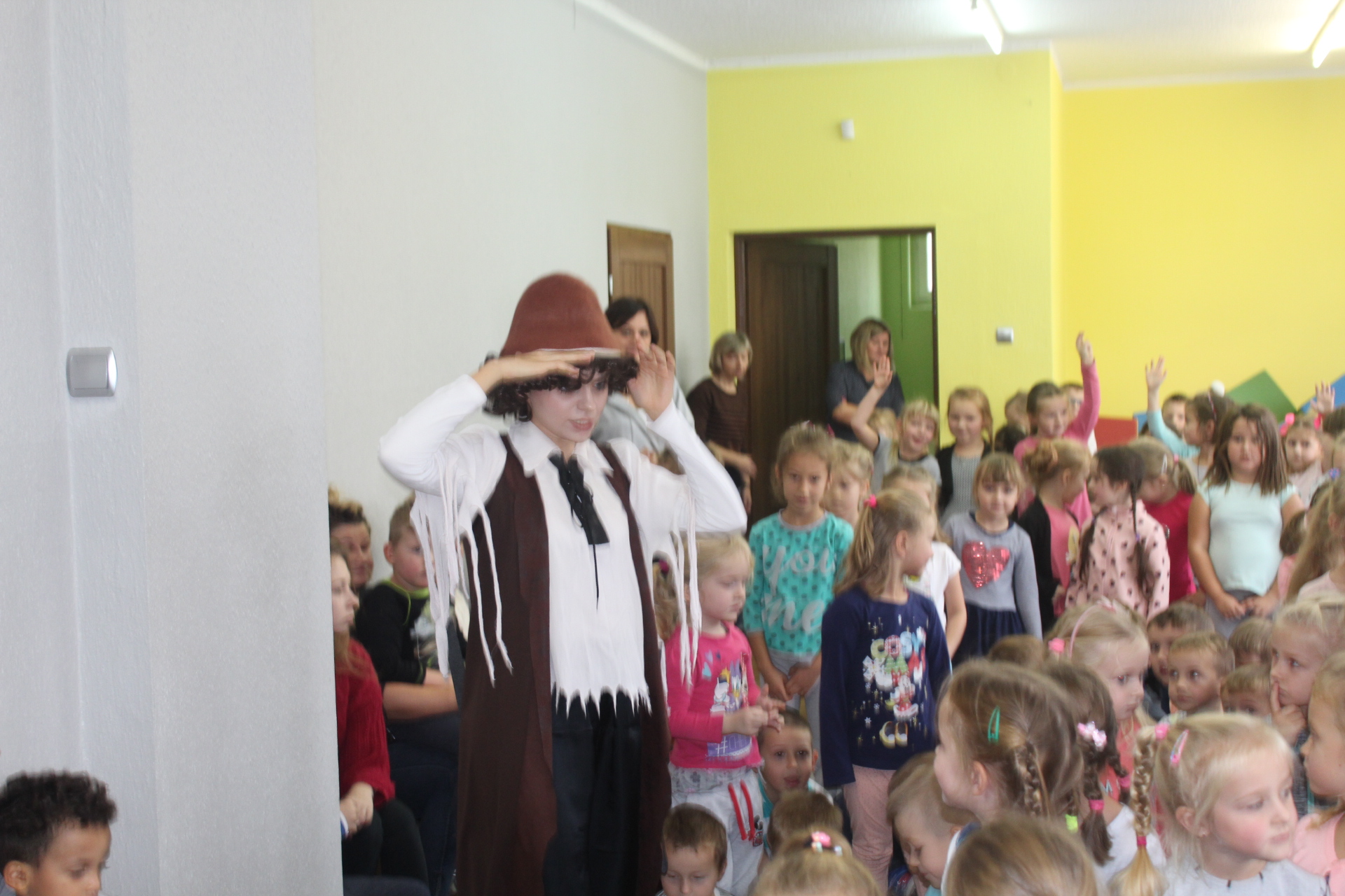 W dniu 28 października 2018 roku nasze przedszkole odwiedzili aktorzy z krakowskiego teatru z inną wersją bajki “Legendy o smoku wawelskim.” Mogliśmy pomagać Szewczykowi, Smokowi i Królewnie a nawet sobie wzajemnie. Przedstawienie bardzo nam się podobało.