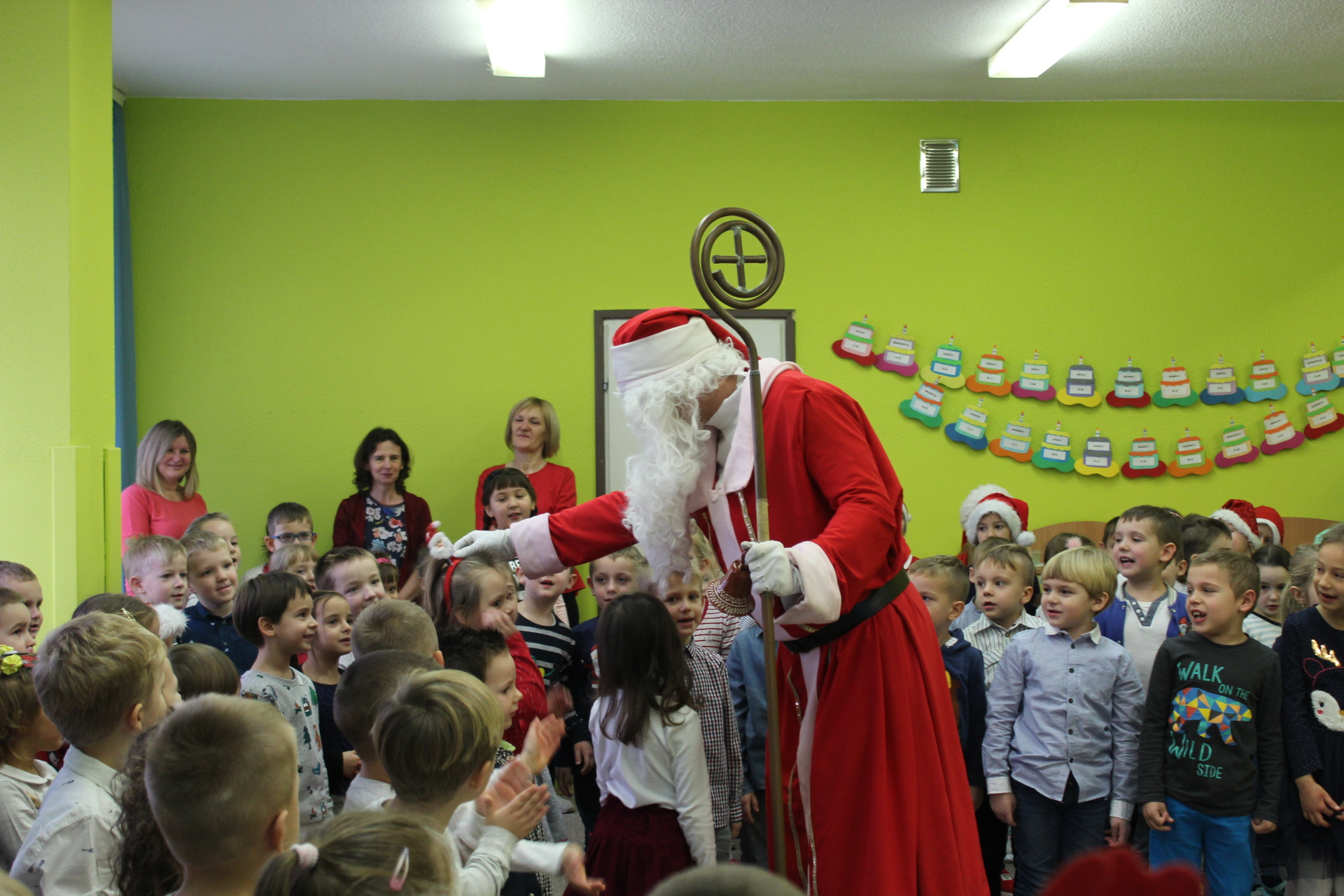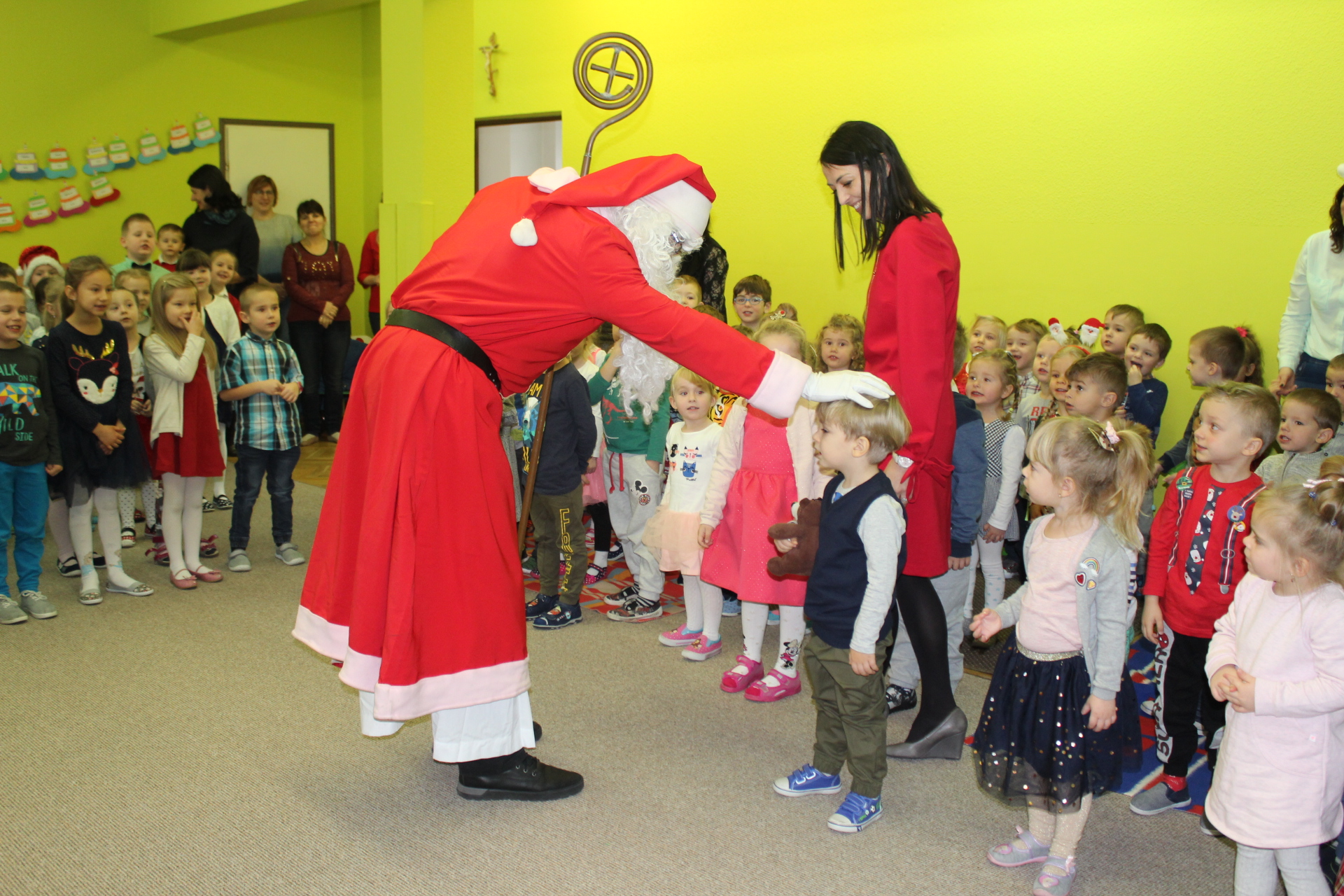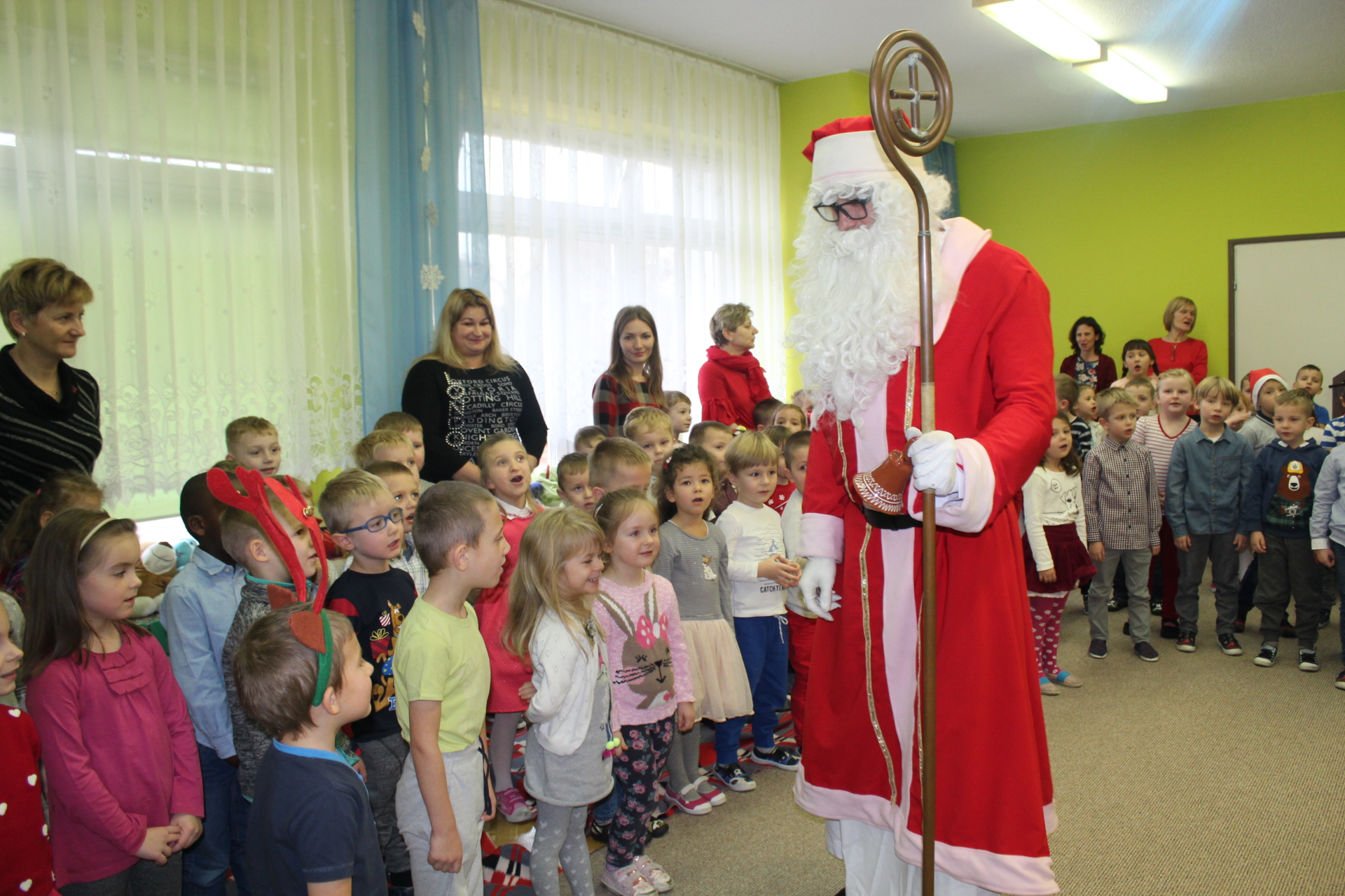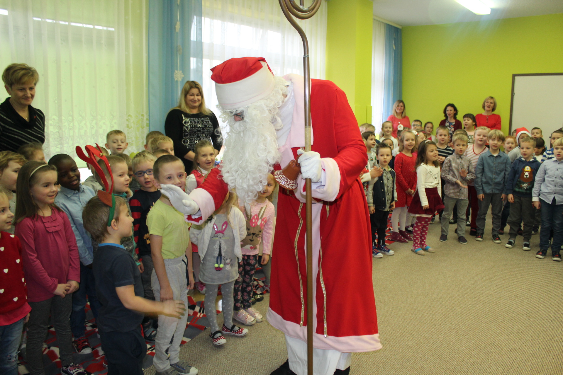 Święty Mikołaj co roku odwiedza dzieci w każdym miejscu na całym świecie. 6 grudnia z workiem pełnym prezentów przyjechał również do naszego przedszkola. Przedszkolaki były zachwycone, szczęśliwe, a kiedy znalazły się blisko św. Mikołaja – troszkę zawstydzone. Oprócz worka z prezentami św. Mikołaj przywiózł ze sobą dużo uśmiechu. Rozmawiał z dziećmi, zachęcał, aby były grzeczne, słuchały rodziców i pań w przedszkolu. Na zakończenie Mikołaj osobiście wręczał paczki wszystkim przedszkolakom, a w nich – dla każdego coś dobrego!