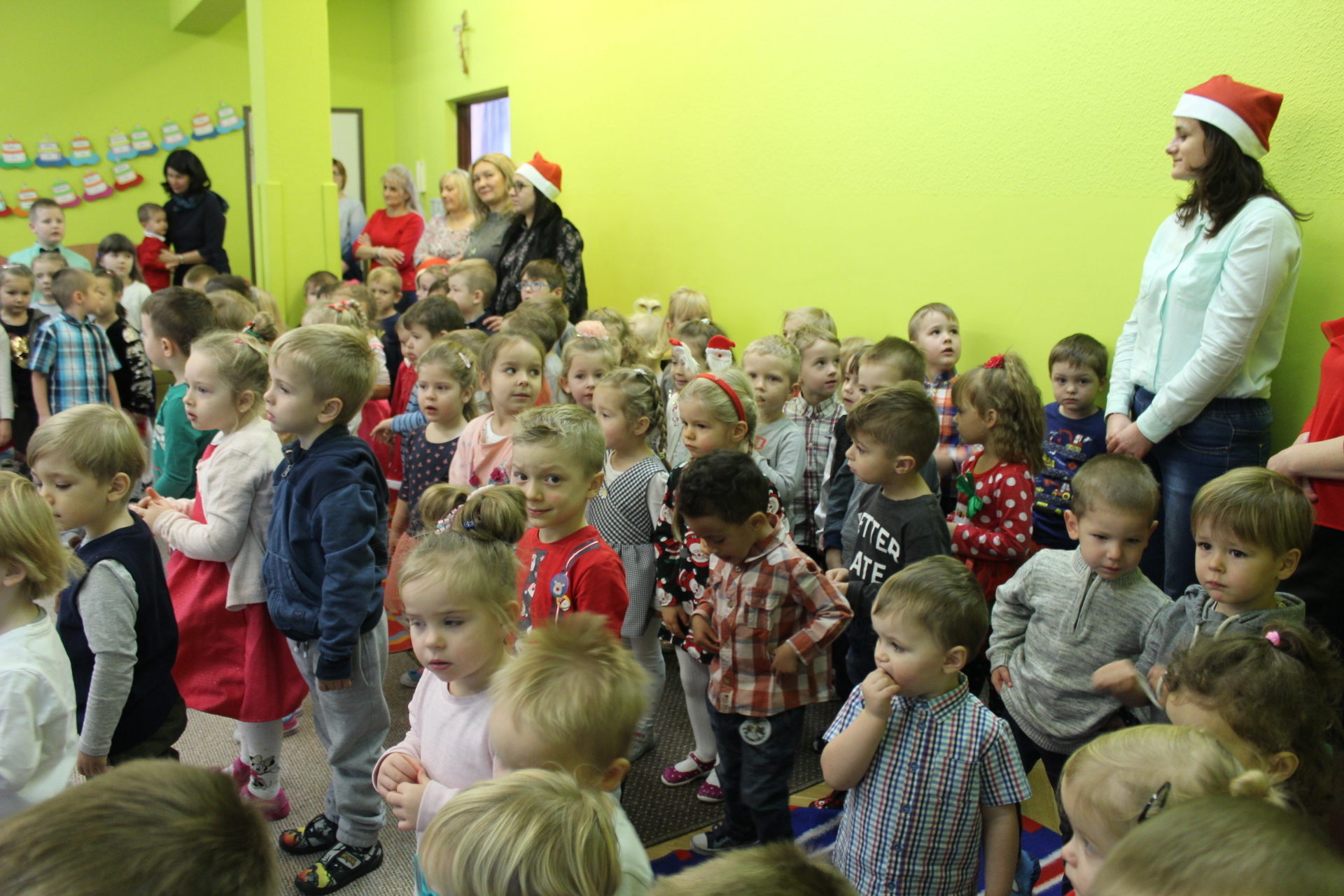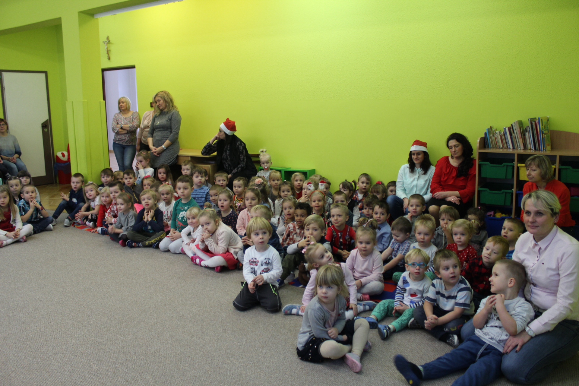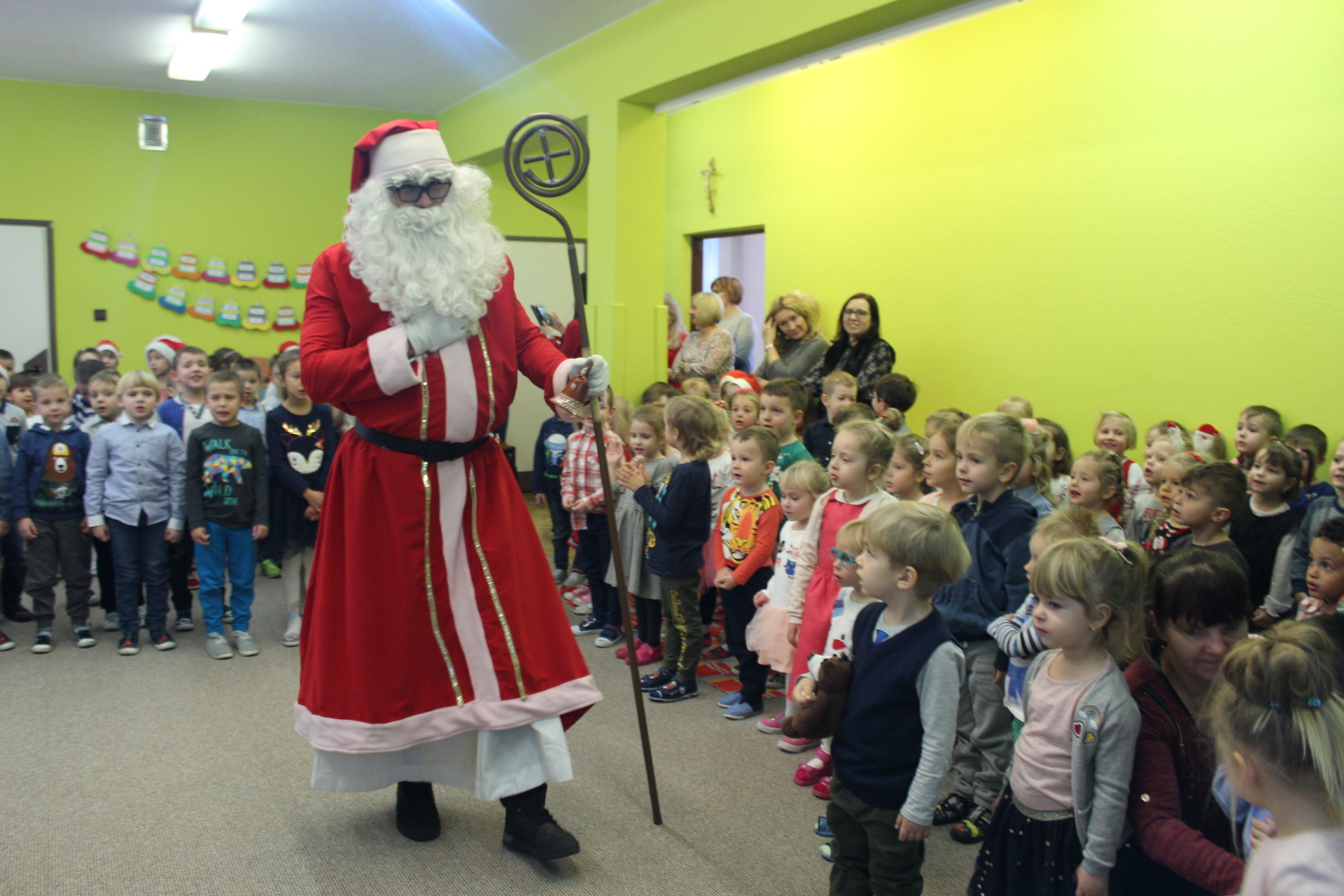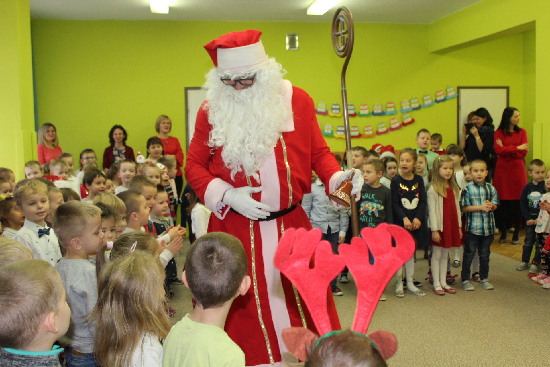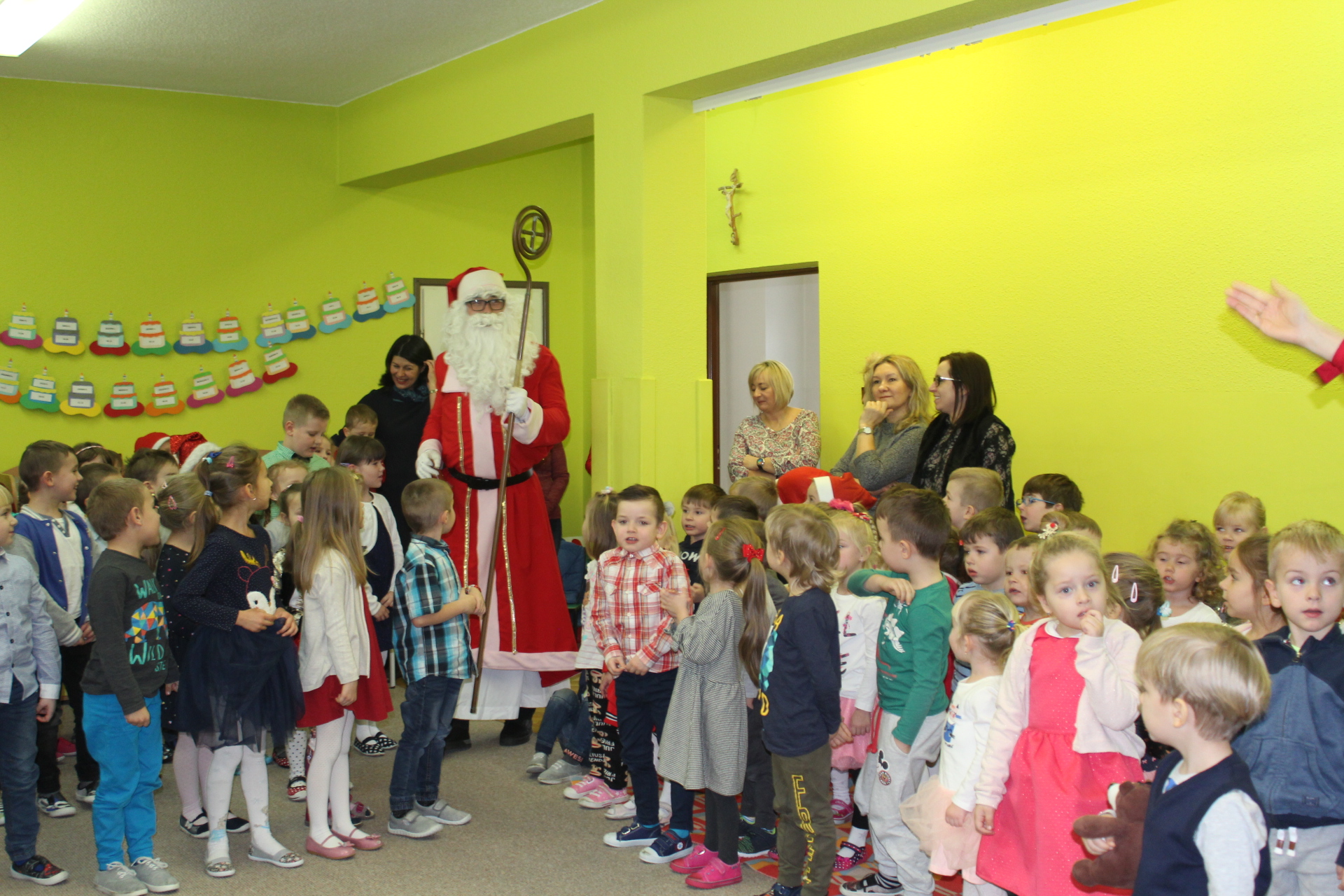 Święty Mikołaj co roku odwiedza dzieci w każdym miejscu na całym świecie. 6 grudnia z workiem pełnym prezentów przyjechał również do naszego przedszkola. Przedszkolaki były zachwycone, szczęśliwe, a kiedy znalazły się blisko św. Mikołaja – troszkę zawstydzone. Oprócz worka z prezentami św. Mikołaj przywiózł ze sobą dużo uśmiechu. Rozmawiał z dziećmi, zachęcał, aby były grzeczne, słuchały rodziców i pań w przedszkolu. Na zakończenie Mikołaj osobiście wręczał paczki wszystkim przedszkolakom, a w nich – dla każdego coś dobrego!
