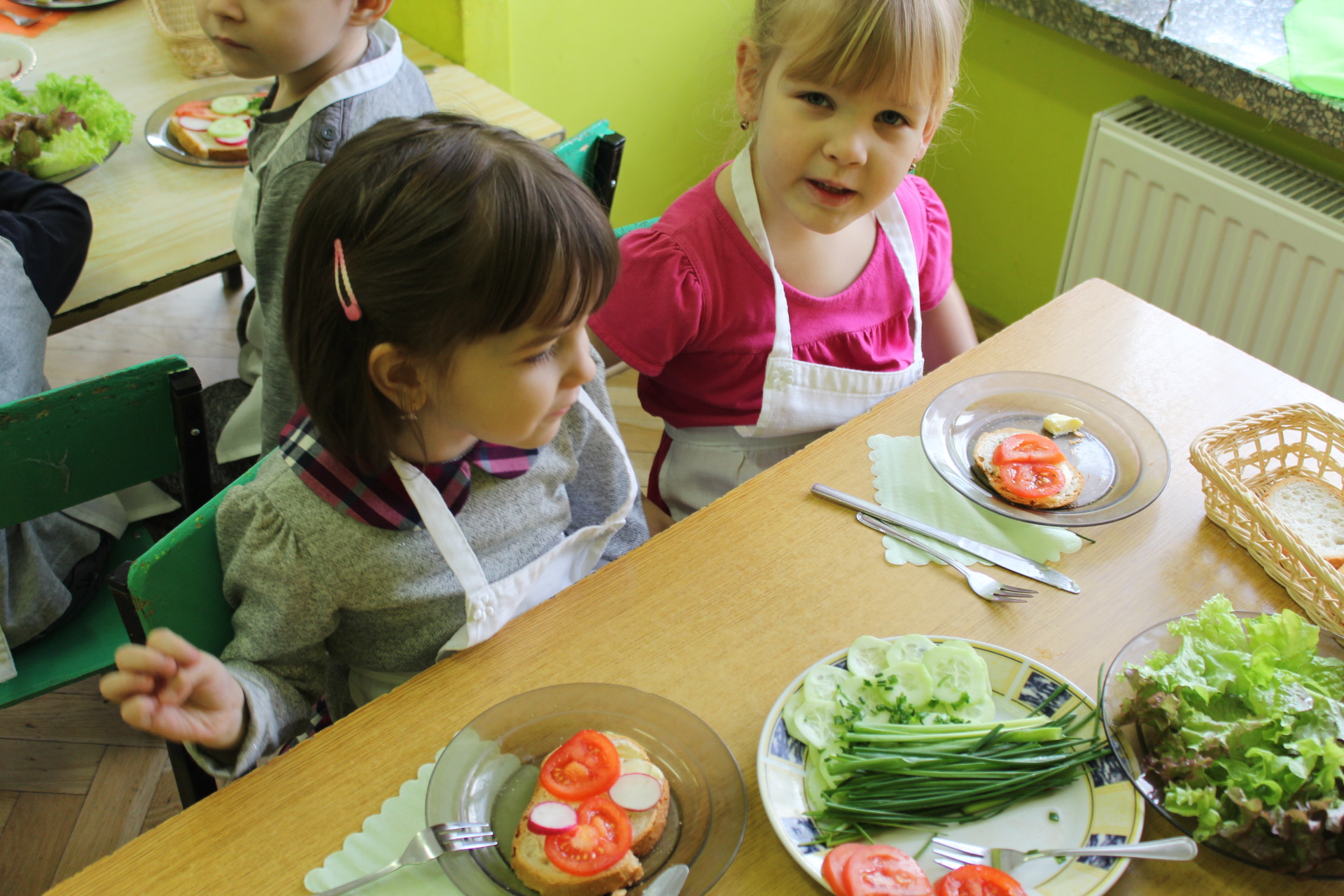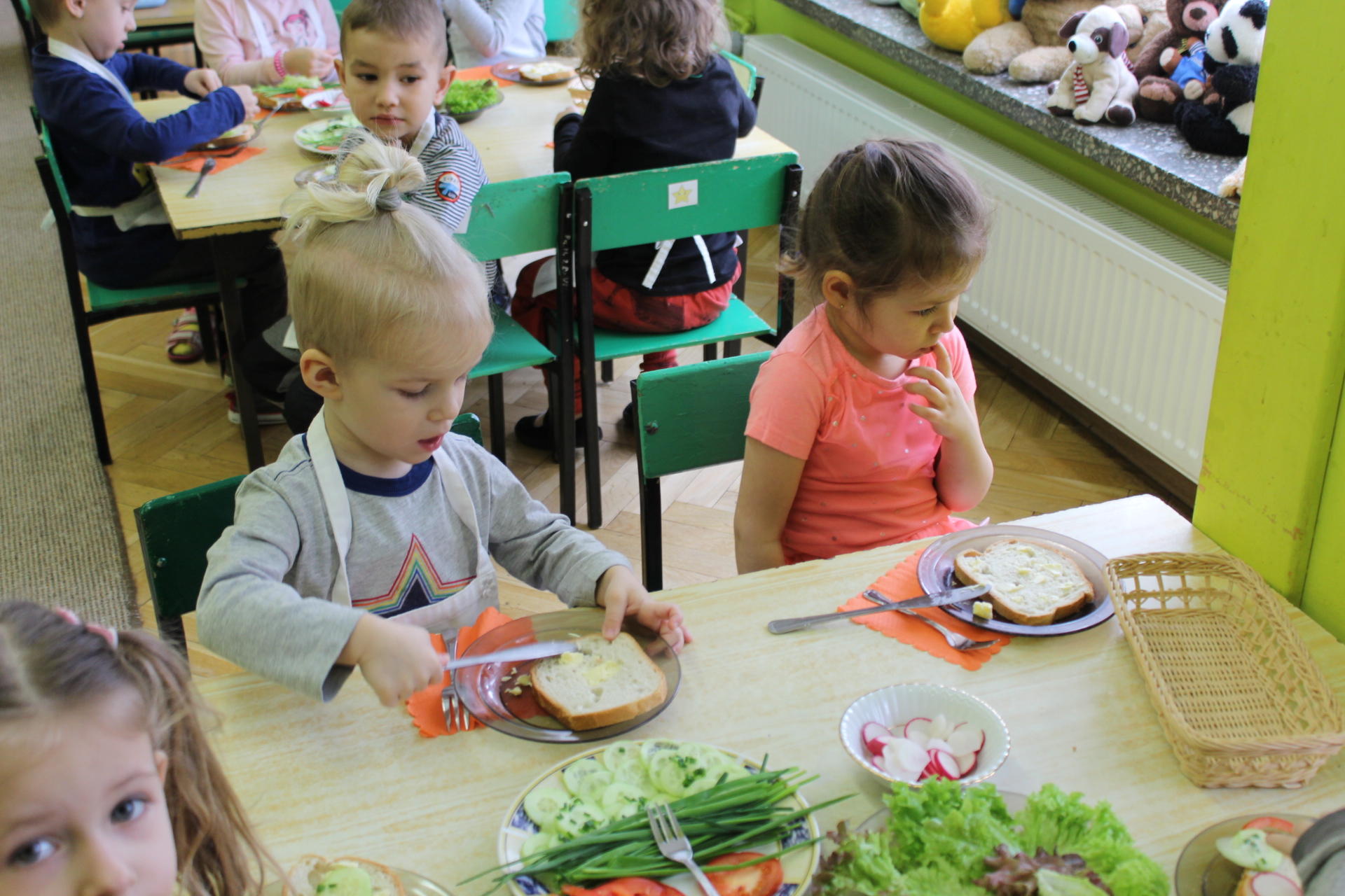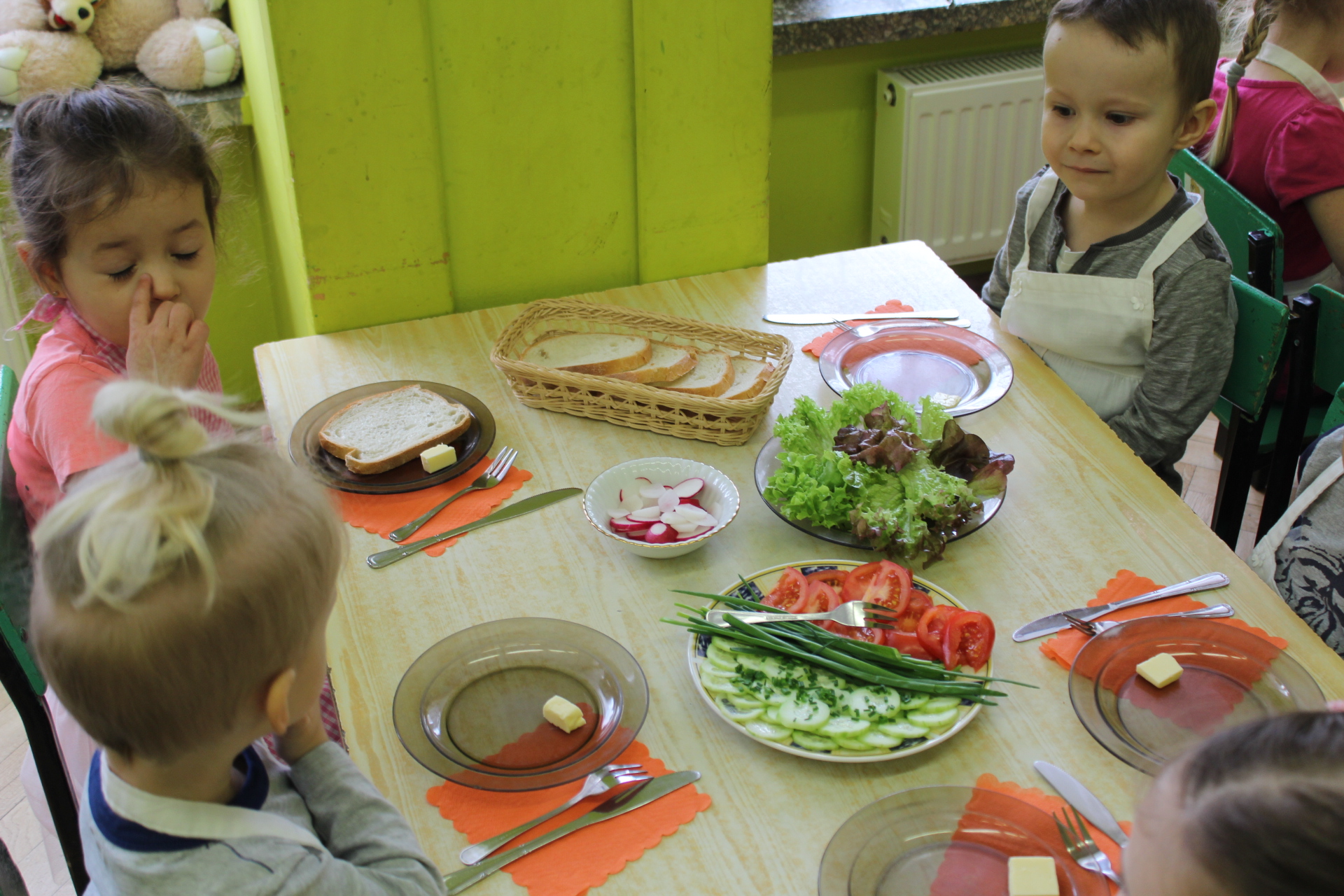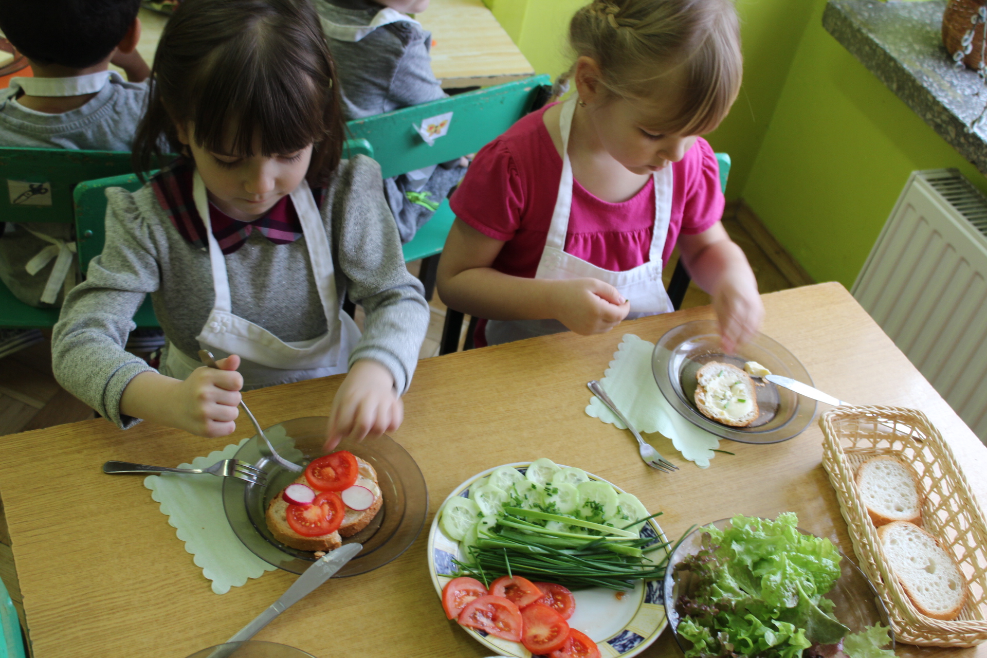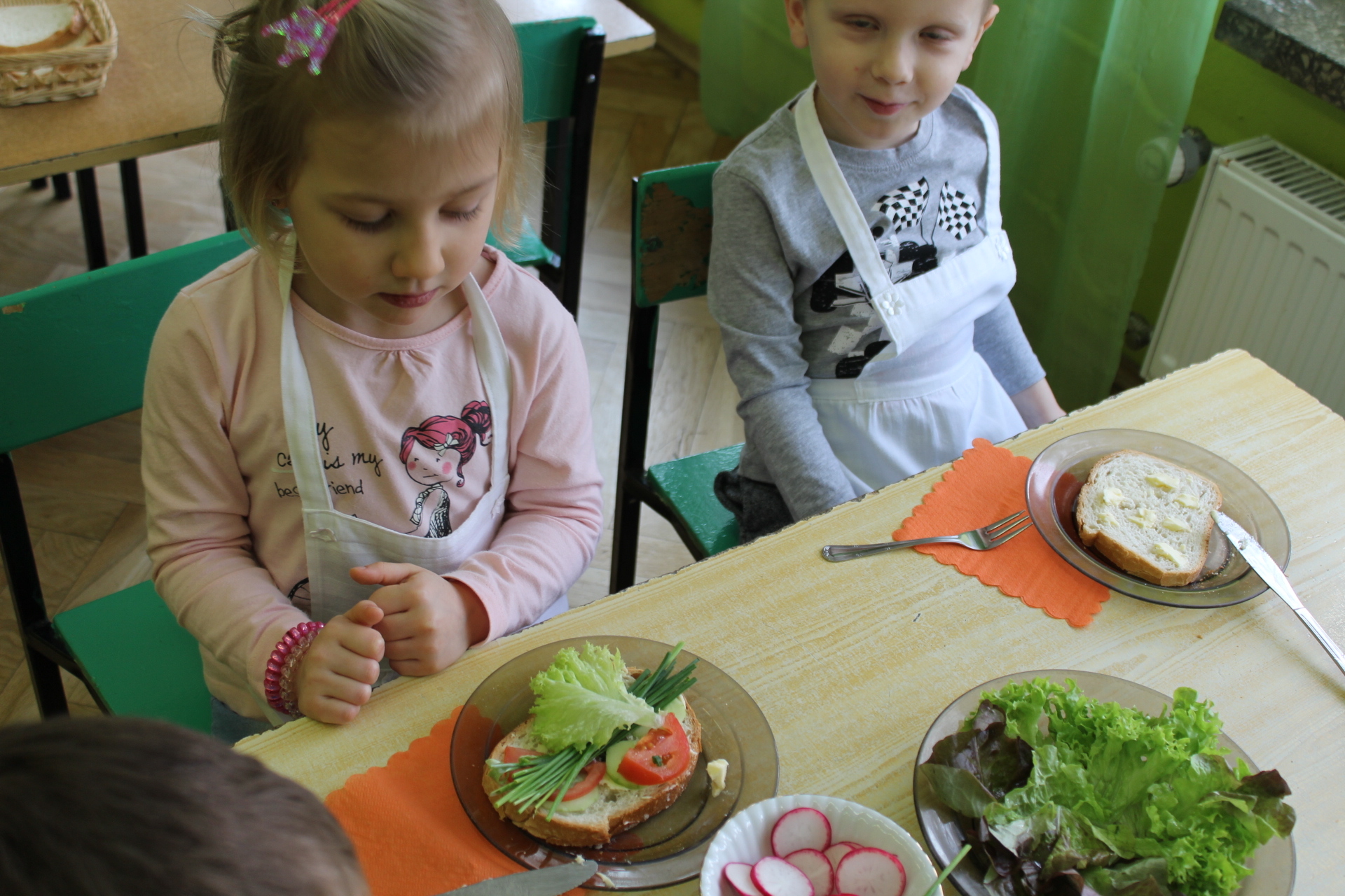 Dzieci z grupy II w ramach zajęć samodzielnie wykonały i ozdabiały “kolorowe kanapki”. Zwrócono uwagę na konieczność spożywania warzyw, które są źródłem witamin. Najpierw zgromadzono produkty “nowalijki”- pomidory, sałatę, rzodkiewkę, ogórki, szczypiorek i potrzebne narzędzia. Odbyła się też rozmowa na temat higieny i bezpieczeństwa podczas pracy aż w końcu odbyła się degustacja kanapek. Zabawa była pyszna!