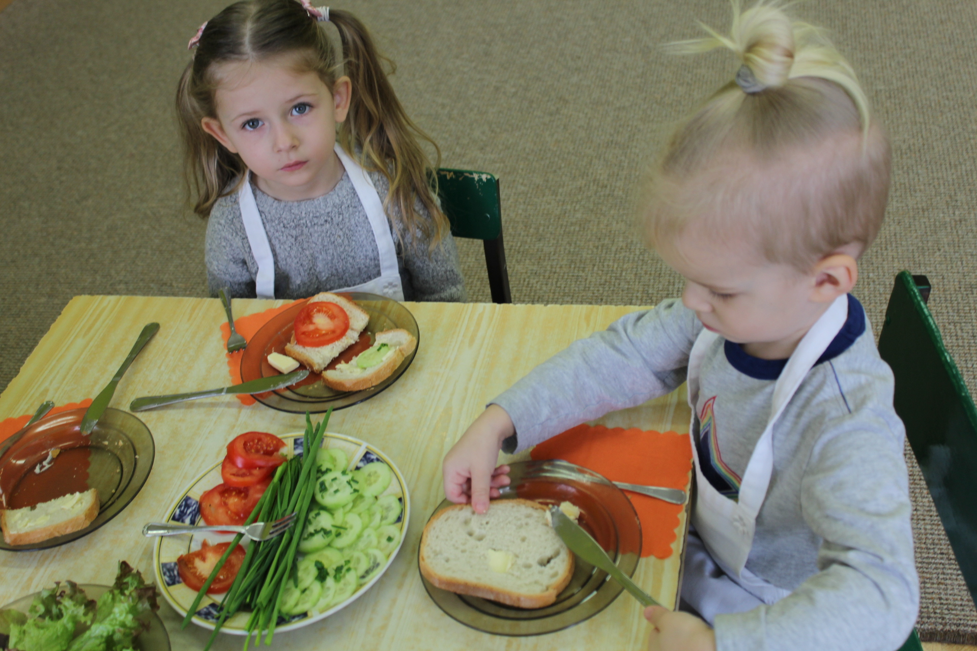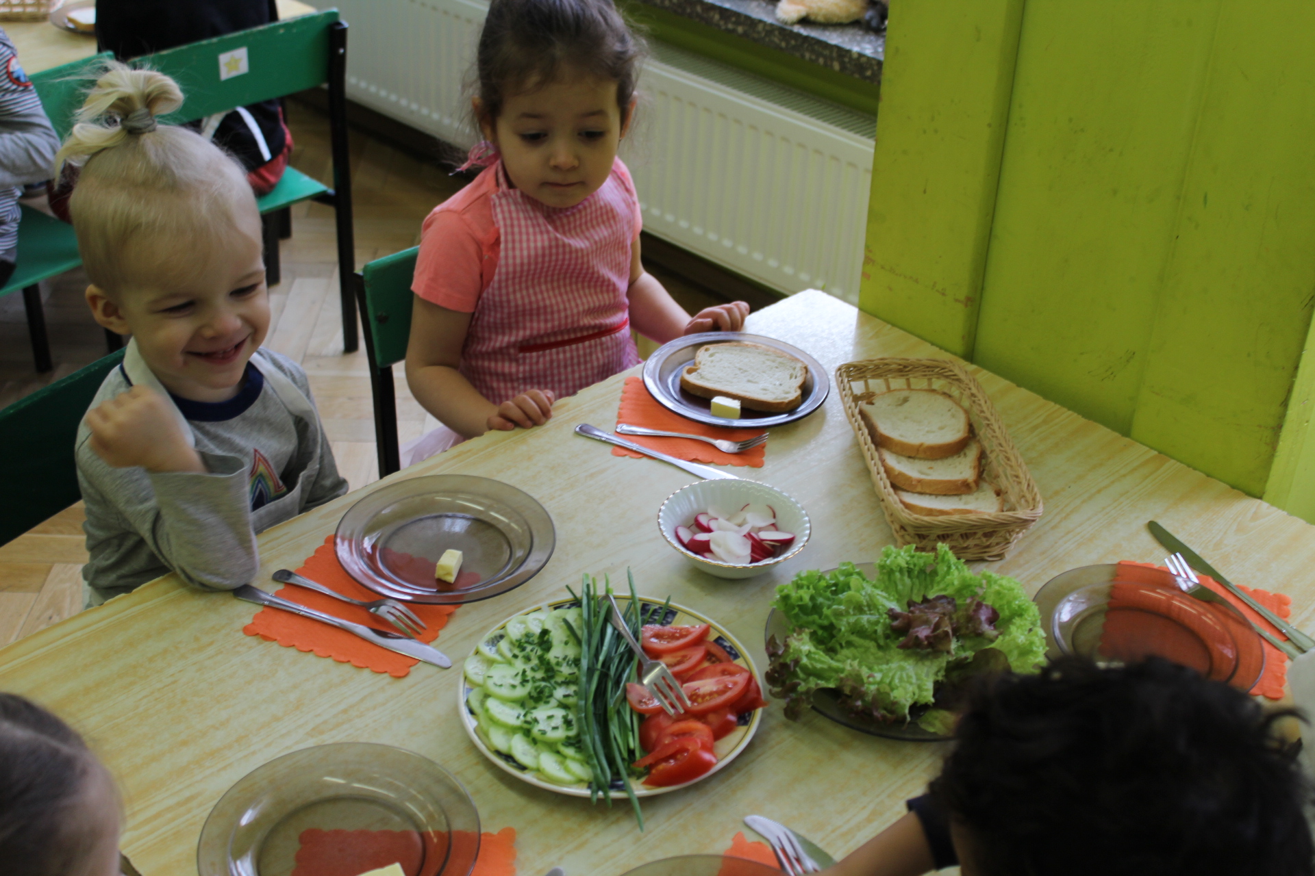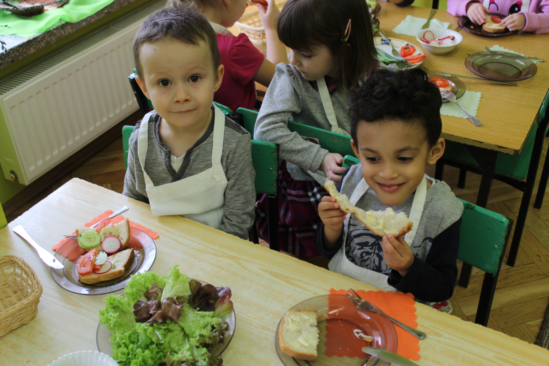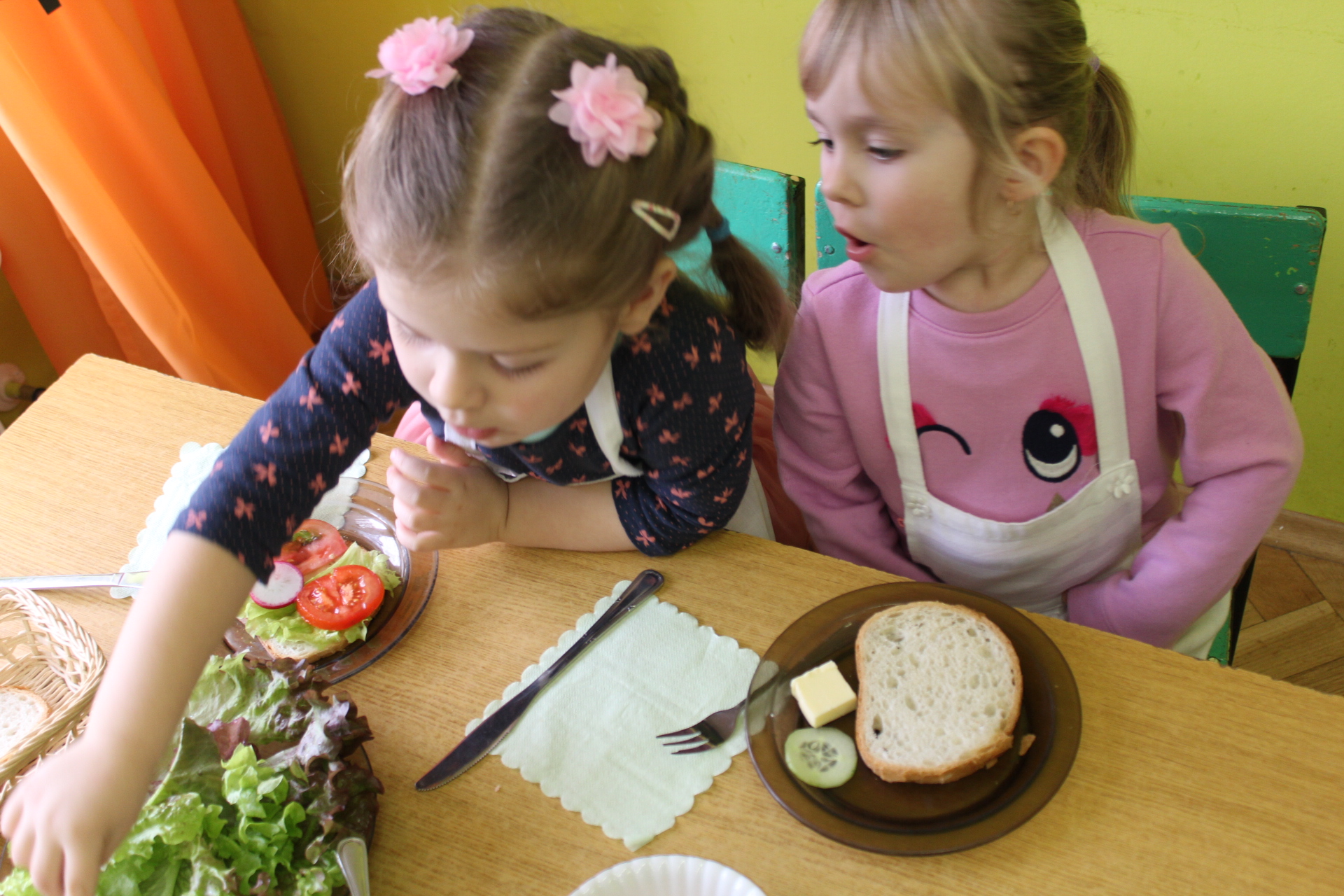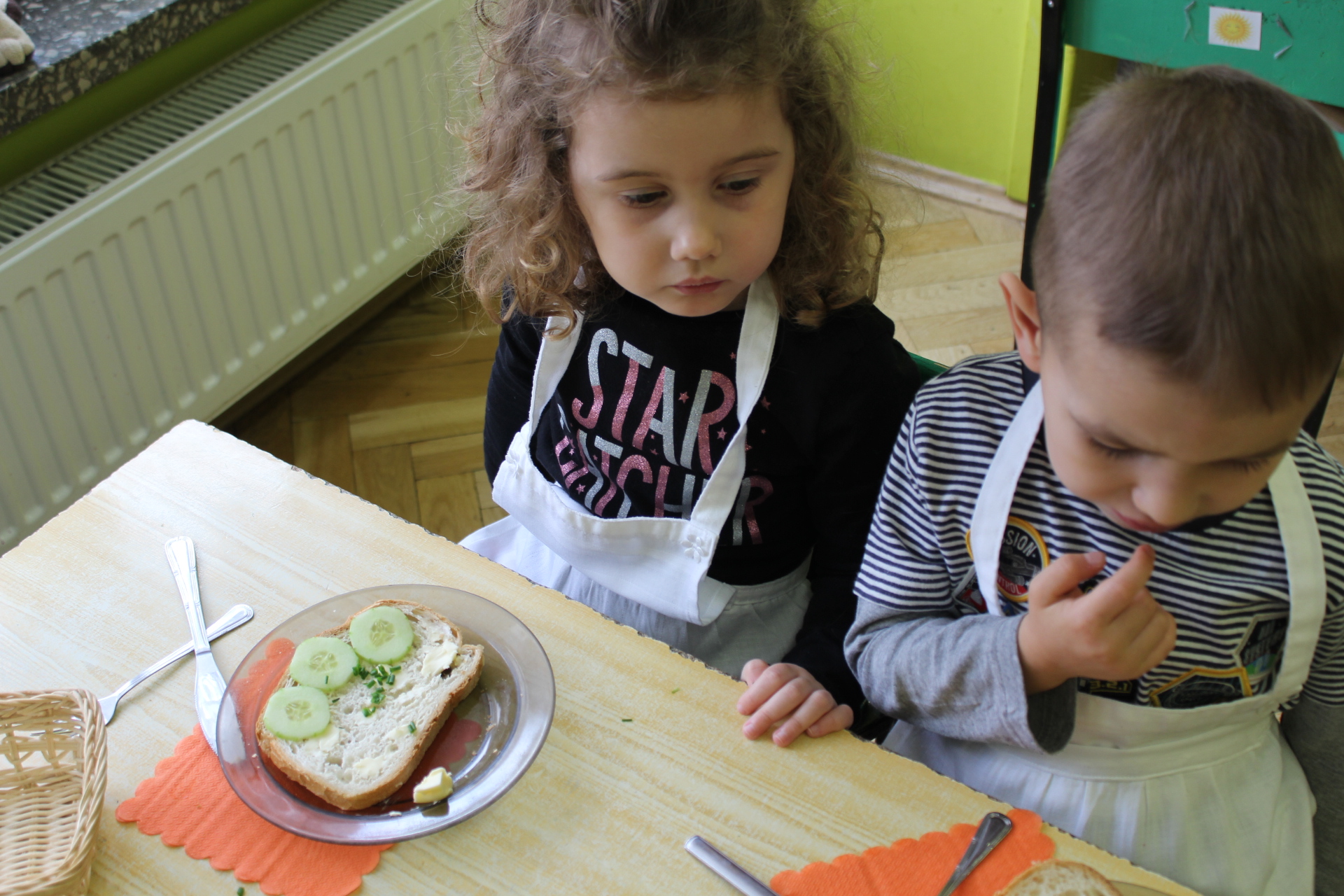 Dzieci z grupy II w ramach zajęć samodzielnie wykonały i ozdabiały “kolorowe kanapki”. Zwrócono uwagę na konieczność spożywania warzyw, które są źródłem witamin. Najpierw zgromadzono produkty “nowalijki”- pomidory, sałatę, rzodkiewkę, ogórki, szczypiorek i potrzebne narzędzia. Odbyła się też rozmowa na temat higieny i bezpieczeństwa podczas pracy aż w końcu odbyła się degustacja kanapek. Zabawa była pyszna!