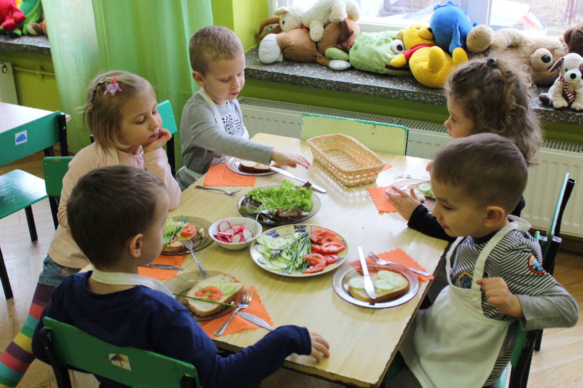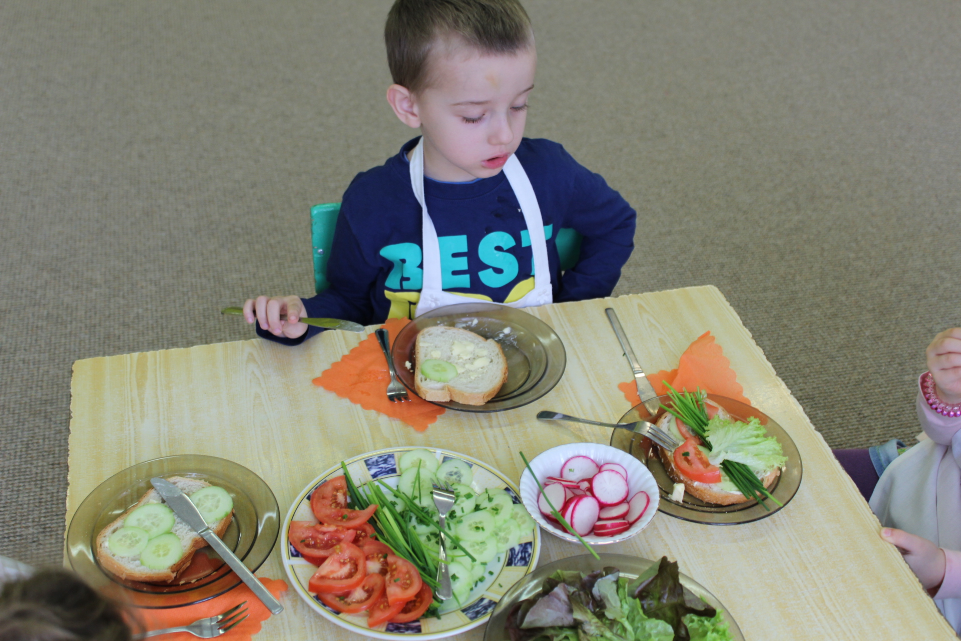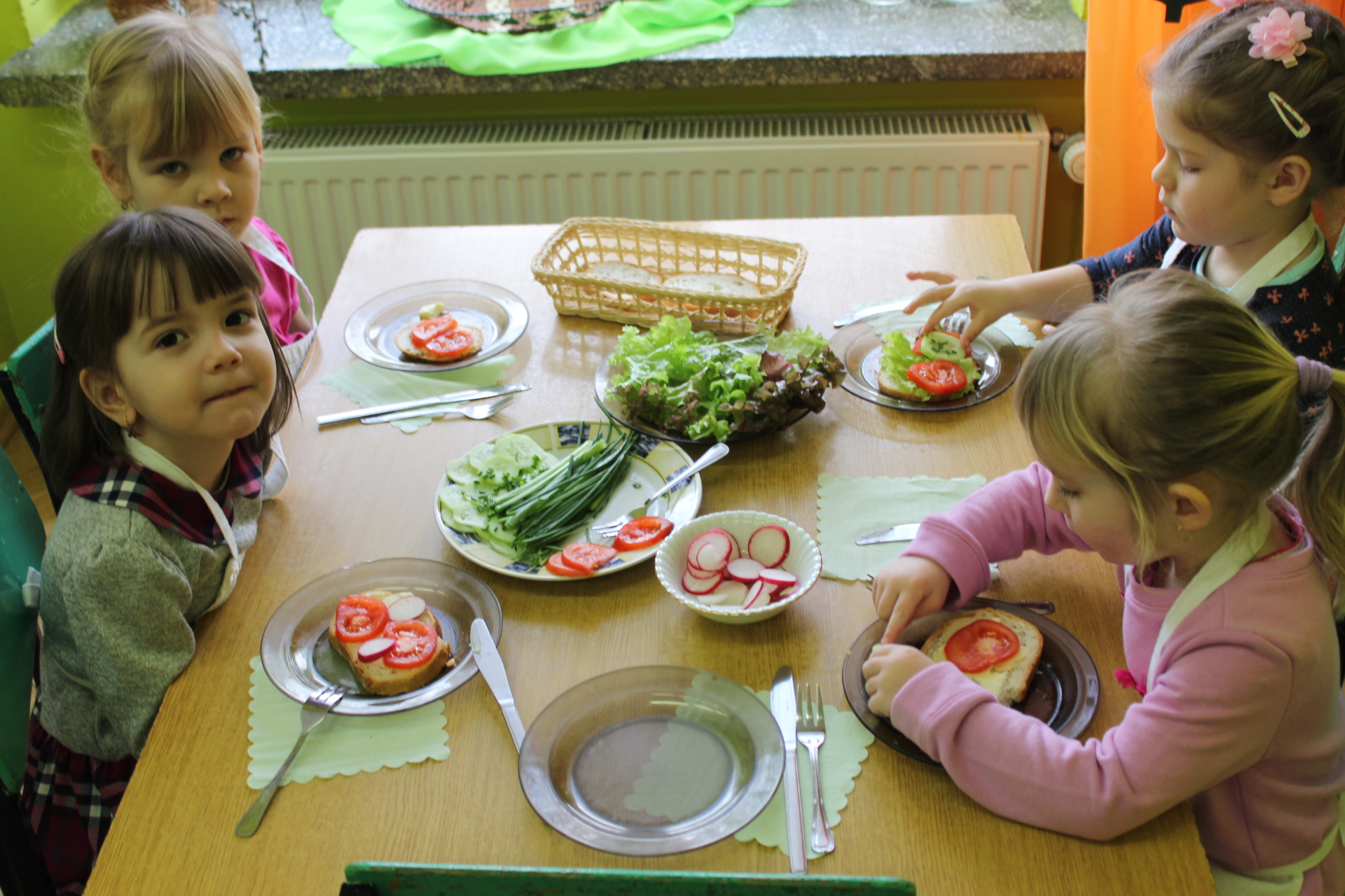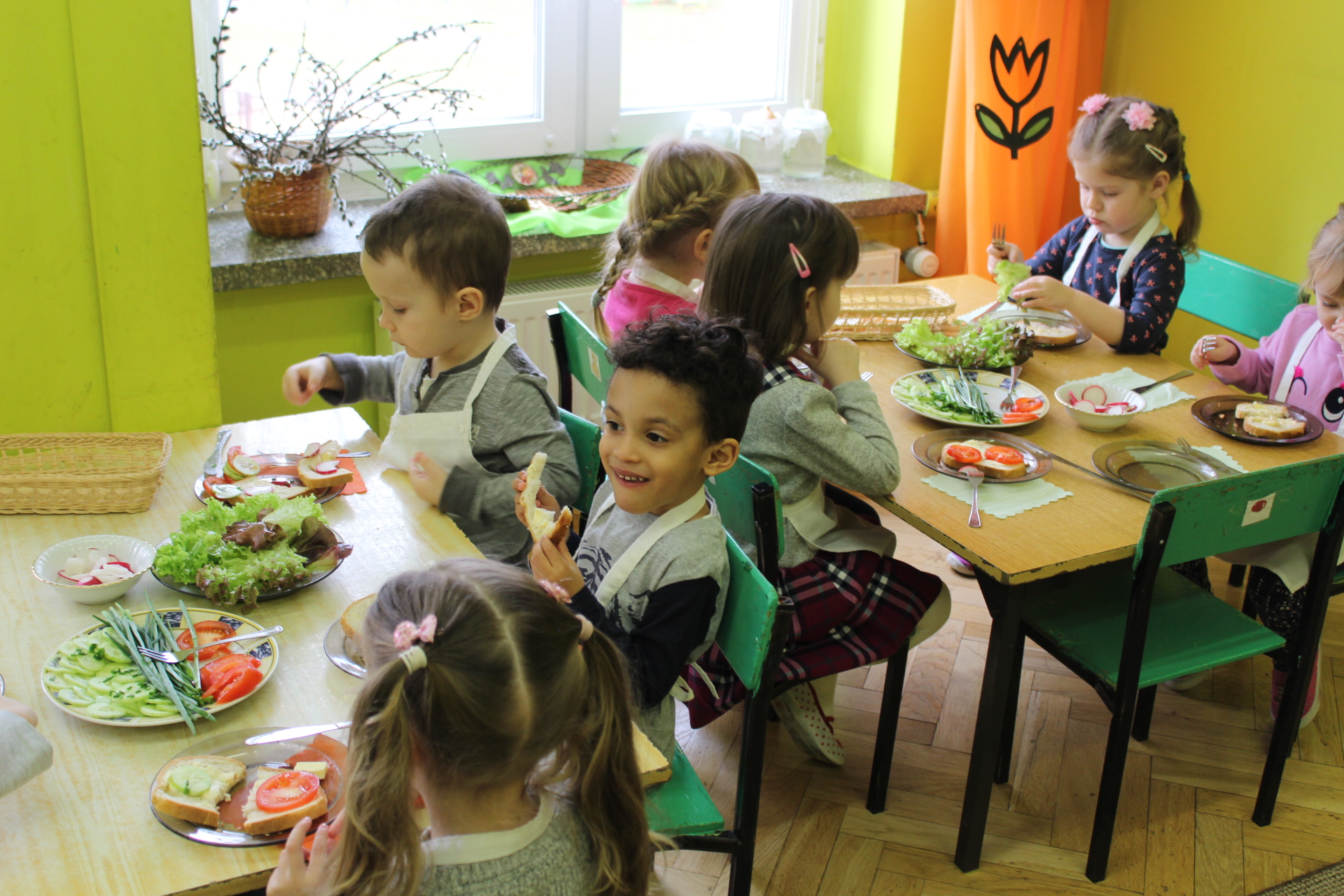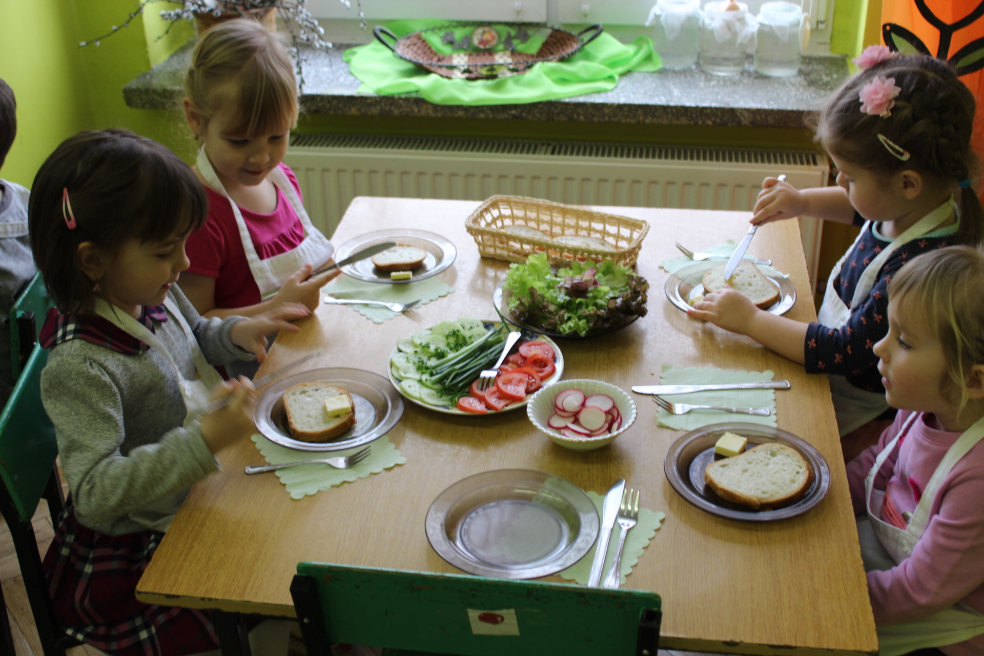 Dzieci z grupy II w ramach zajęć samodzielnie wykonały i ozdabiały “kolorowe kanapki”. Zwrócono uwagę na konieczność spożywania warzyw, które są źródłem witamin. Najpierw zgromadzono produkty “nowalijki”- pomidory, sałatę, rzodkiewkę, ogórki, szczypiorek i potrzebne narzędzia. Odbyła się też rozmowa na temat higieny i bezpieczeństwa podczas pracy aż w końcu odbyła się degustacja kanapek. Zabawa była pyszna!