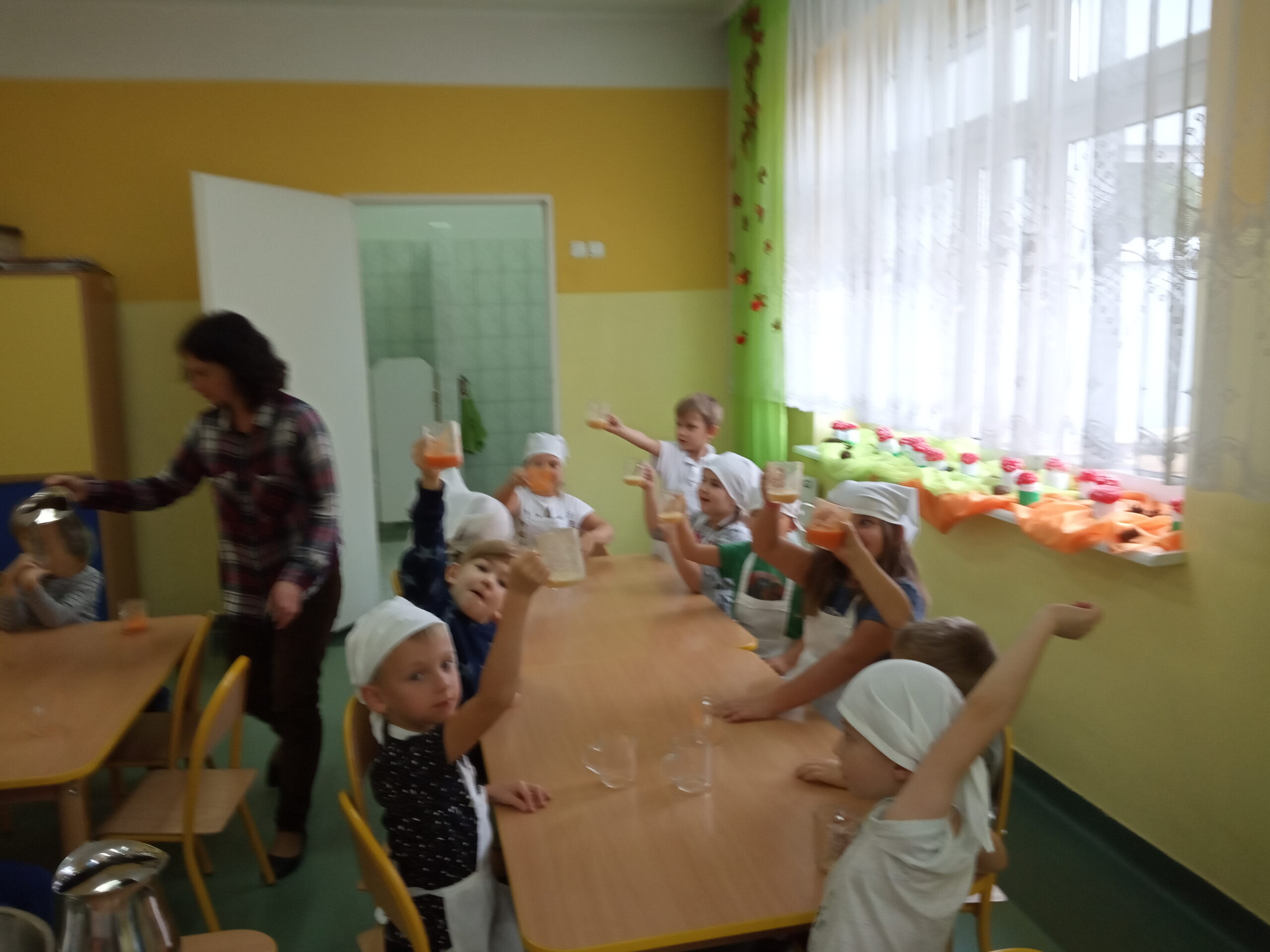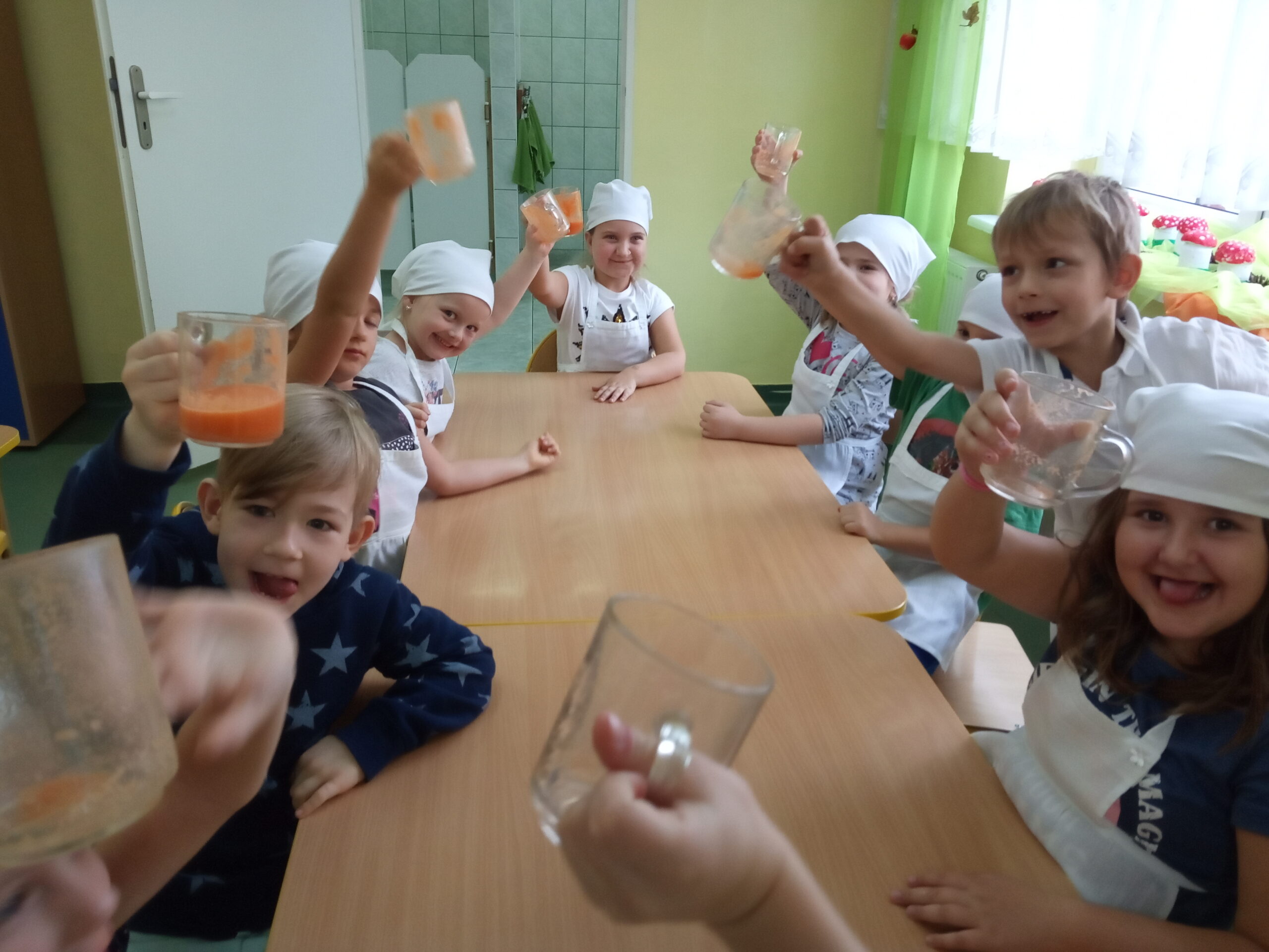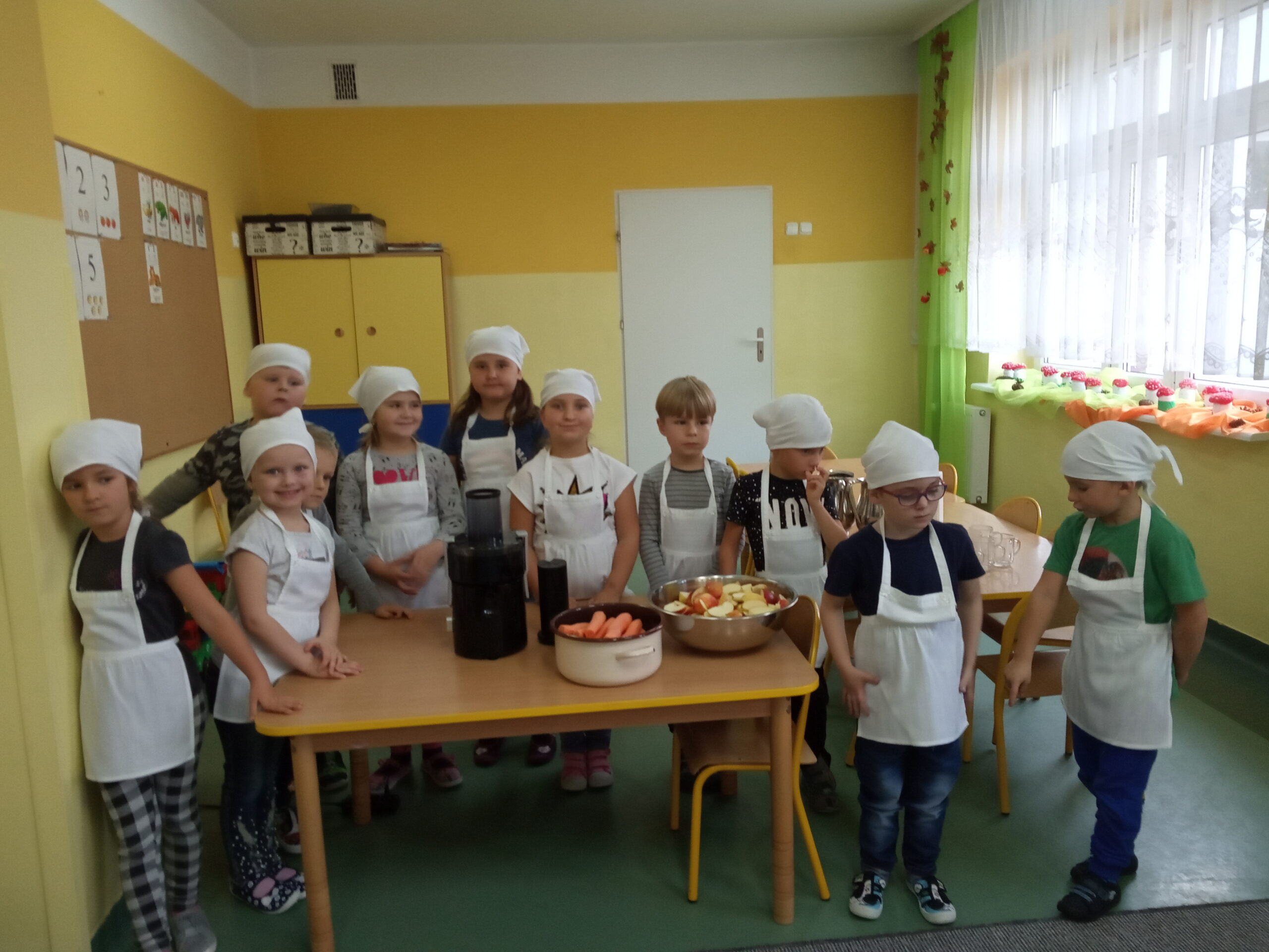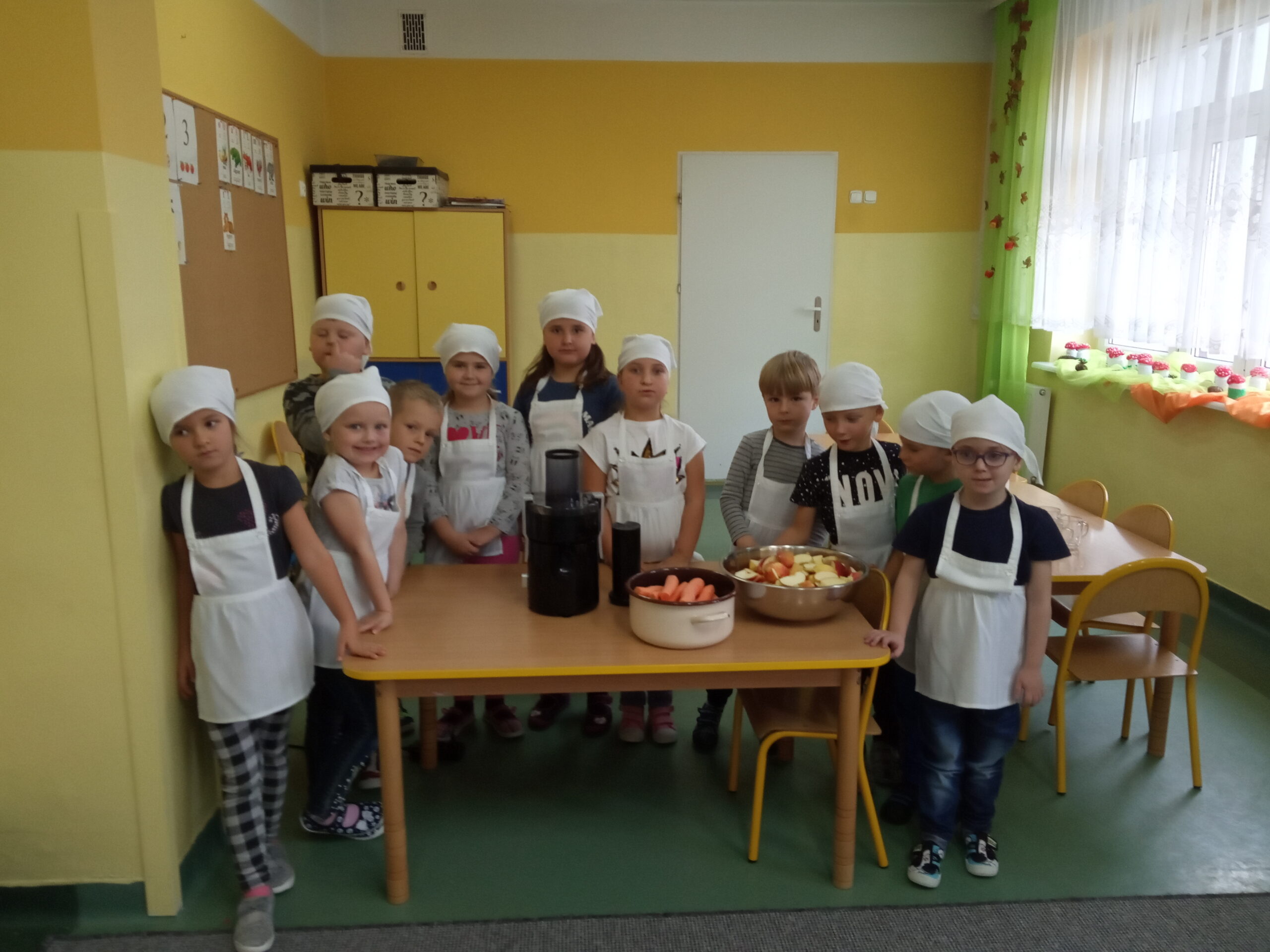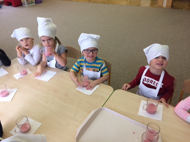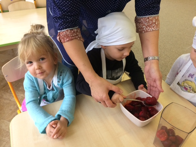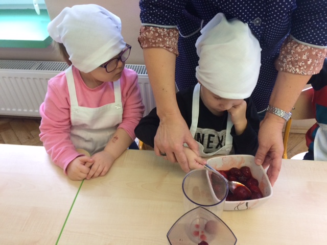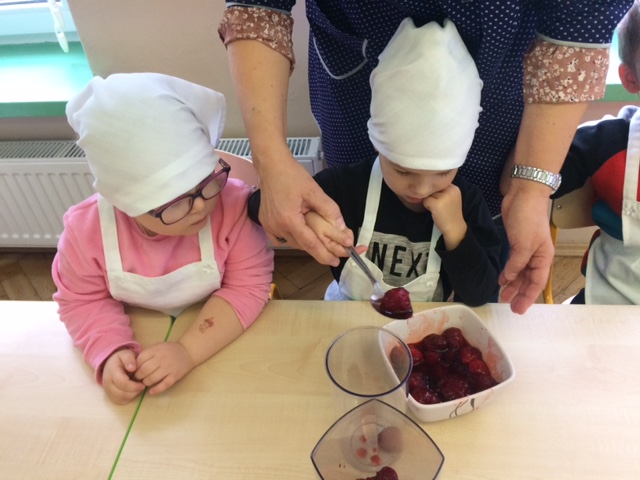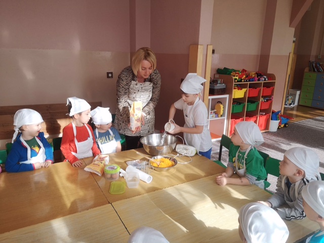 W całej Europie 8 listopada obchodzony jest Europejski Dzień Zdrowego Jedzenia i Gotowania. W związku z tym dzieci z naszego przedszkola uroczyście świętowały ten dzień. Podczas zajęć poznały zasady zdrowego odżywiania, dowiedziały się o konieczności jedzenia warzyw i owoców oraz zapoznały się z najnowszą piramidą zdrowia. Na koniec dzieci założyły fartuszki i przyrządziły zdrowe przekąski.