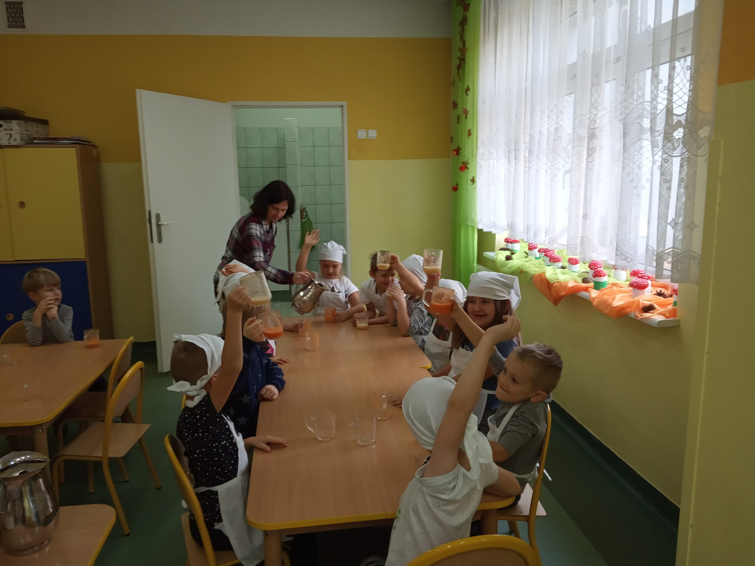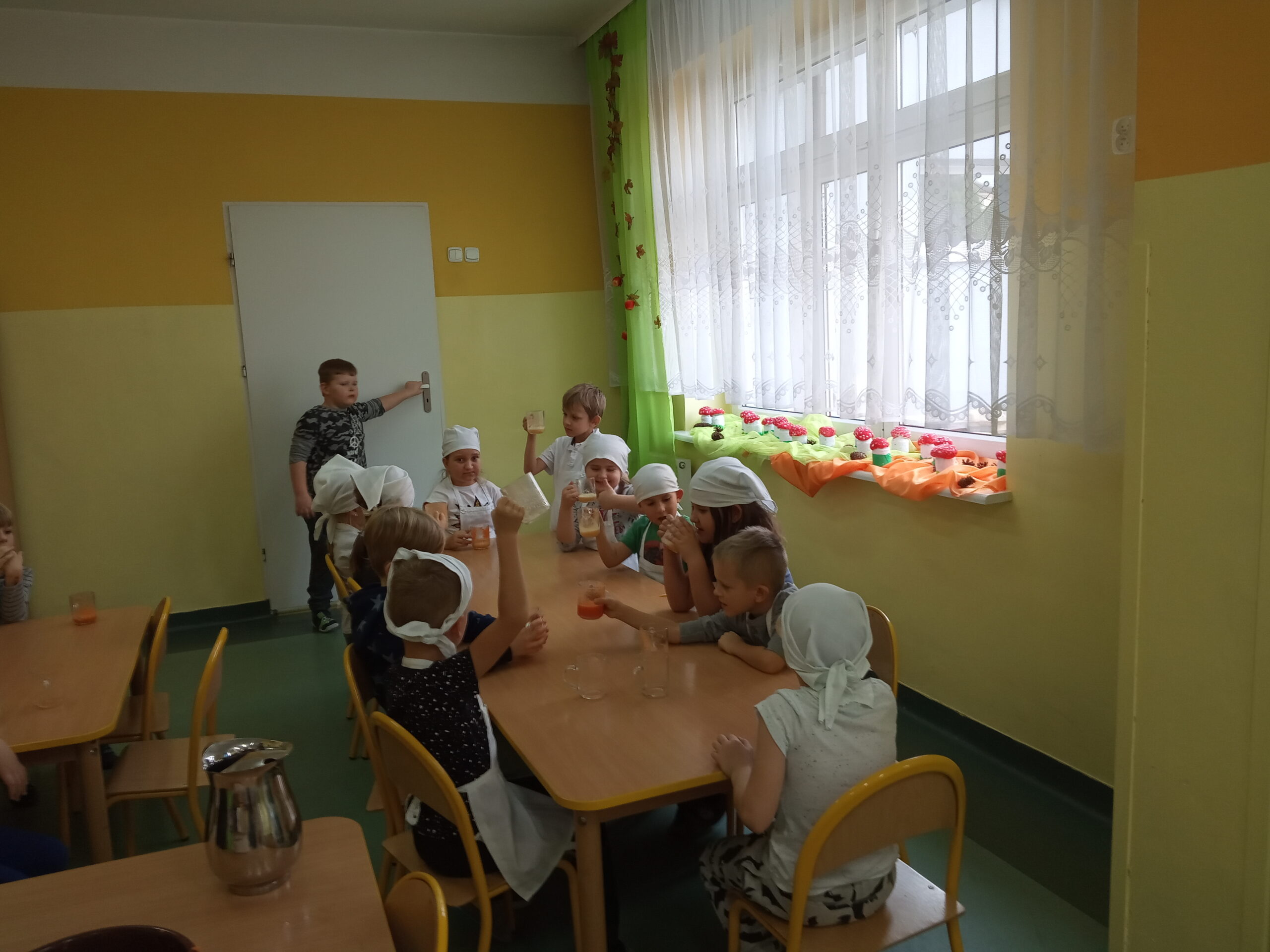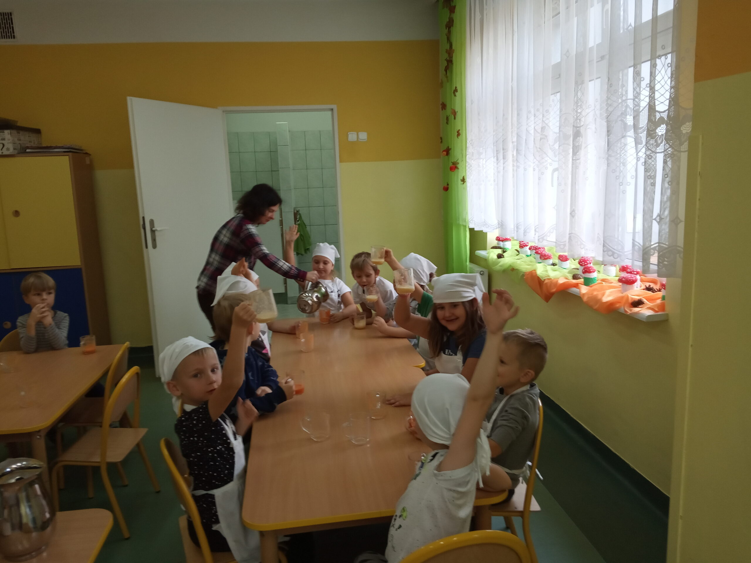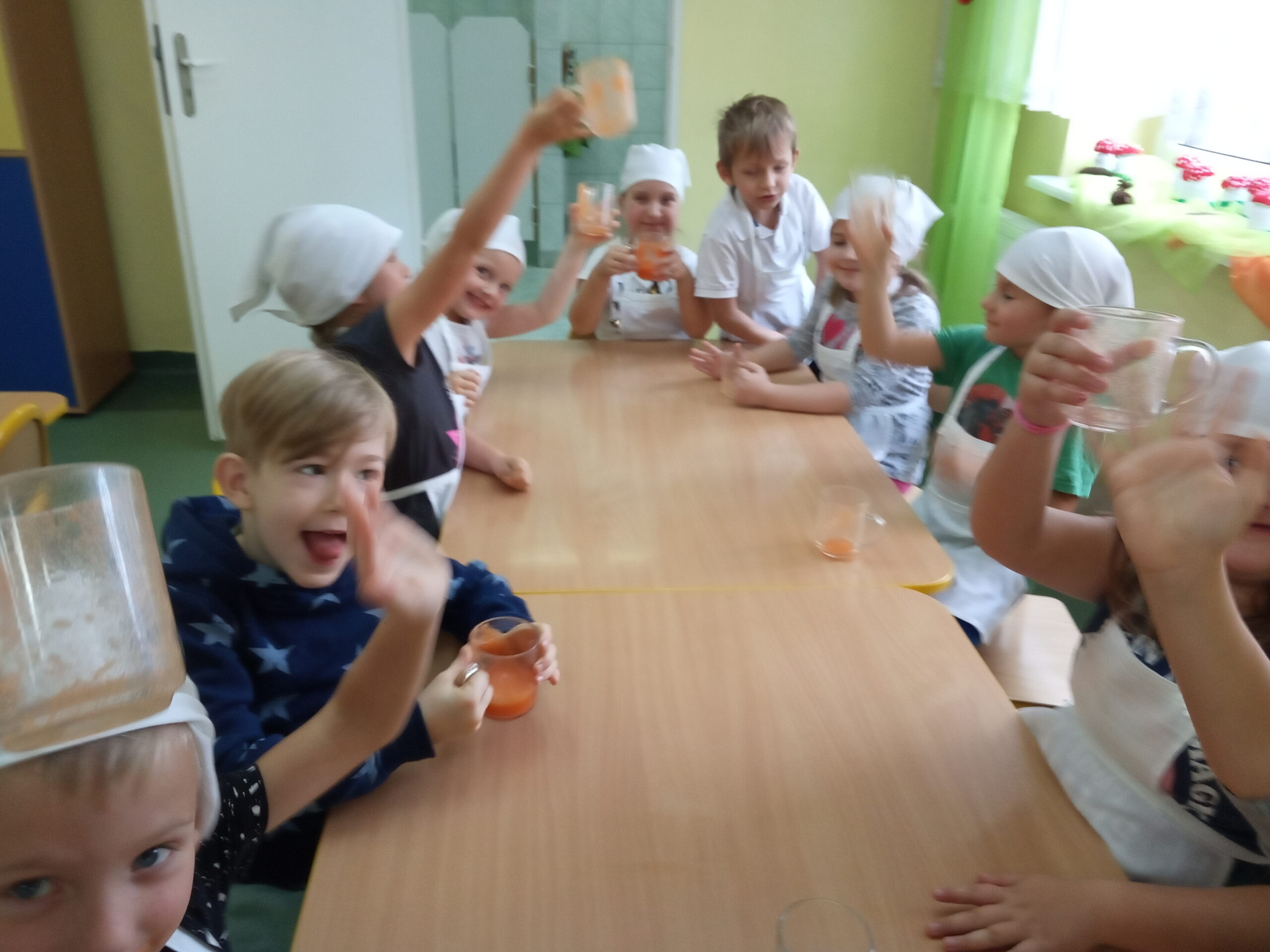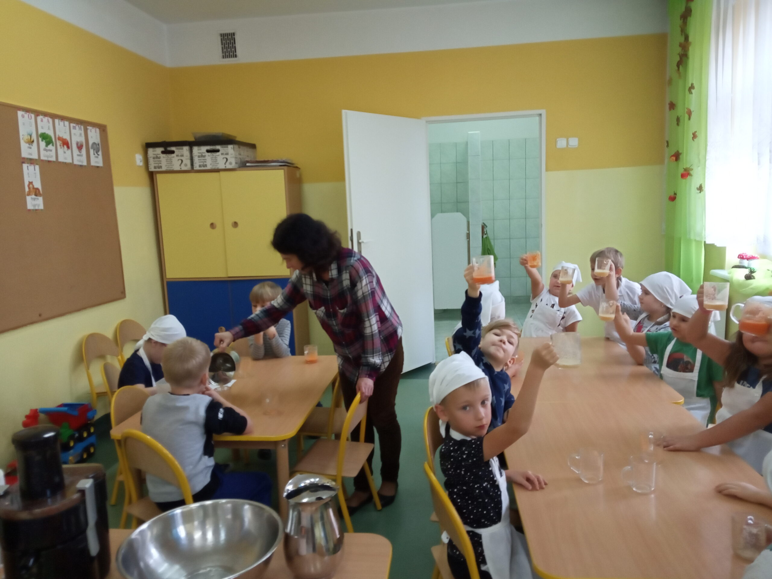 W całej Europie 8 listopada obchodzony jest Europejski Dzień Zdrowego Jedzenia i Gotowania. W związku z tym dzieci z naszego przedszkola uroczyście świętowały ten dzień. Podczas zajęć poznały zasady zdrowego odżywiania, dowiedziały się o konieczności jedzenia warzyw i owoców oraz zapoznały się z najnowszą piramidą zdrowia. Na koniec dzieci założyły fartuszki i przyrządziły zdrowe przekąski.