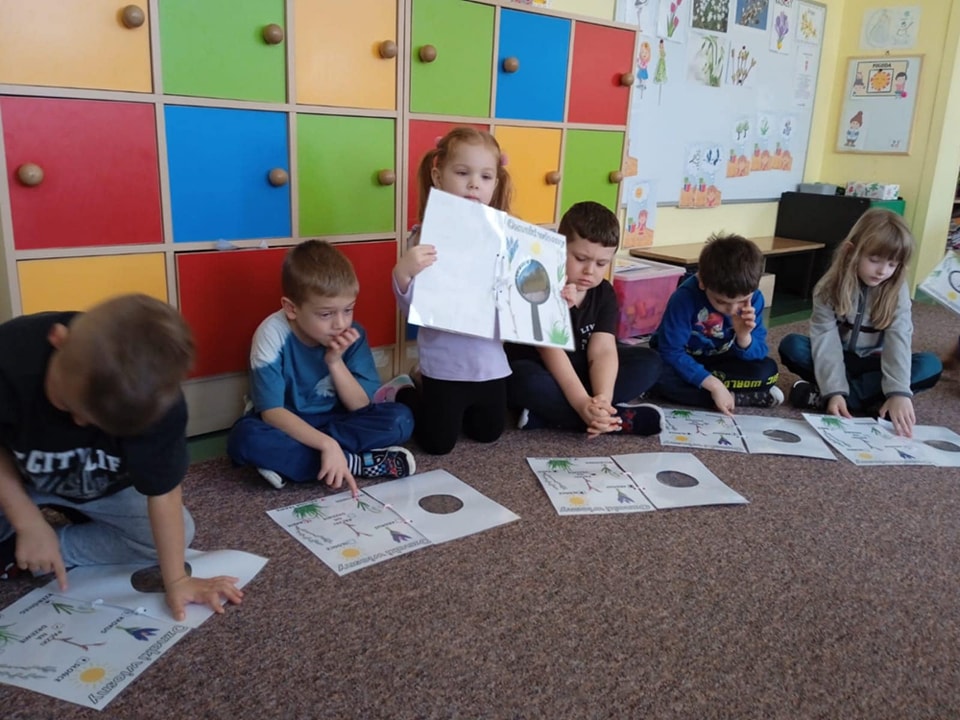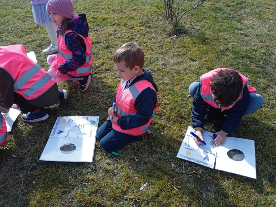 Dzieci z radością znajdowały przebiśniegi, obserwowały pączki na gałązkach i dostrzegały pierwsze owady budzące się do życia. ![]()