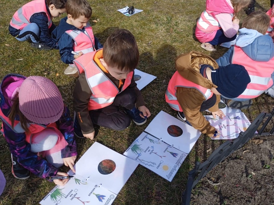 Uzbrojeni w lupy, mali odkrywcy z zaangażowaniem przyglądali się trawie, liściom i korze drzew, wypatrując najdrobniejszych śladów budzącej się przyrody. ![]()