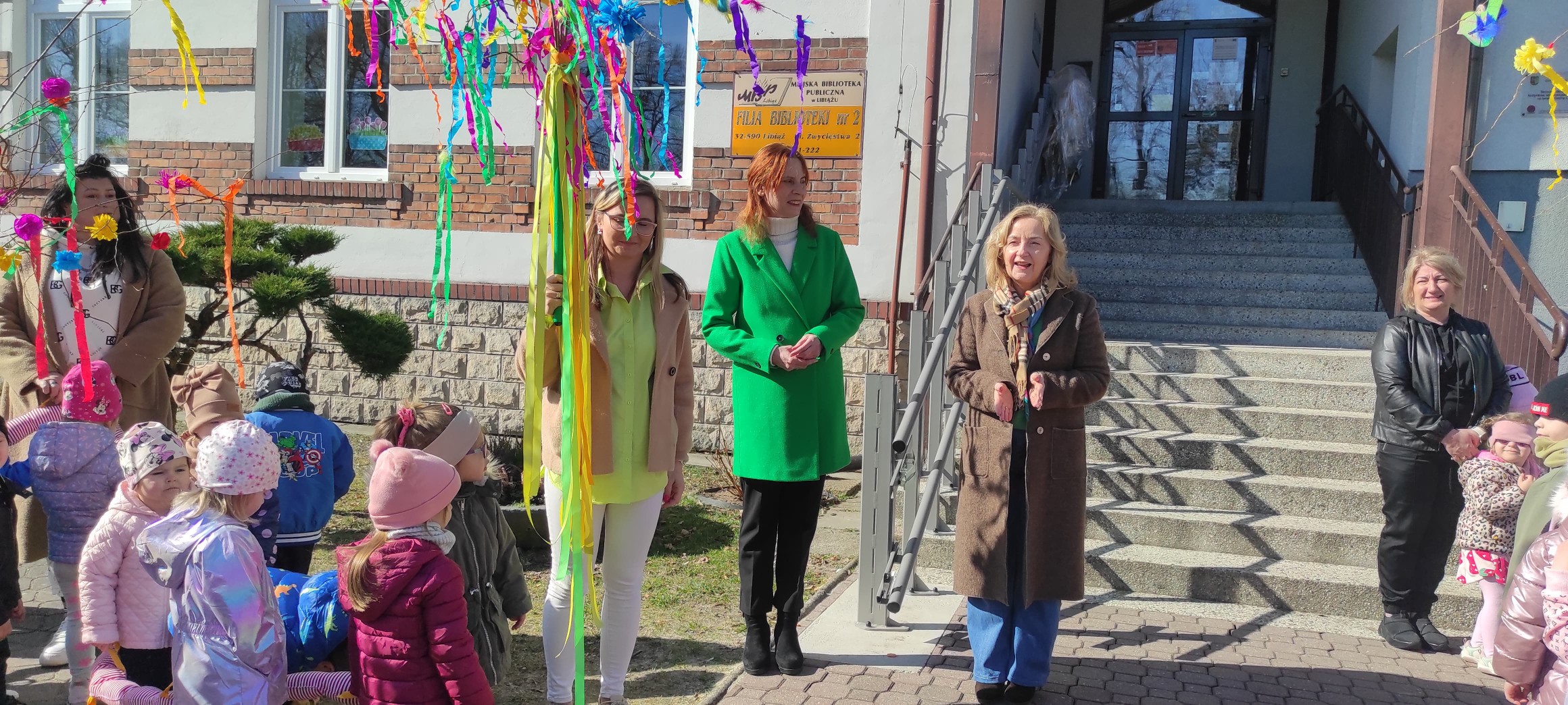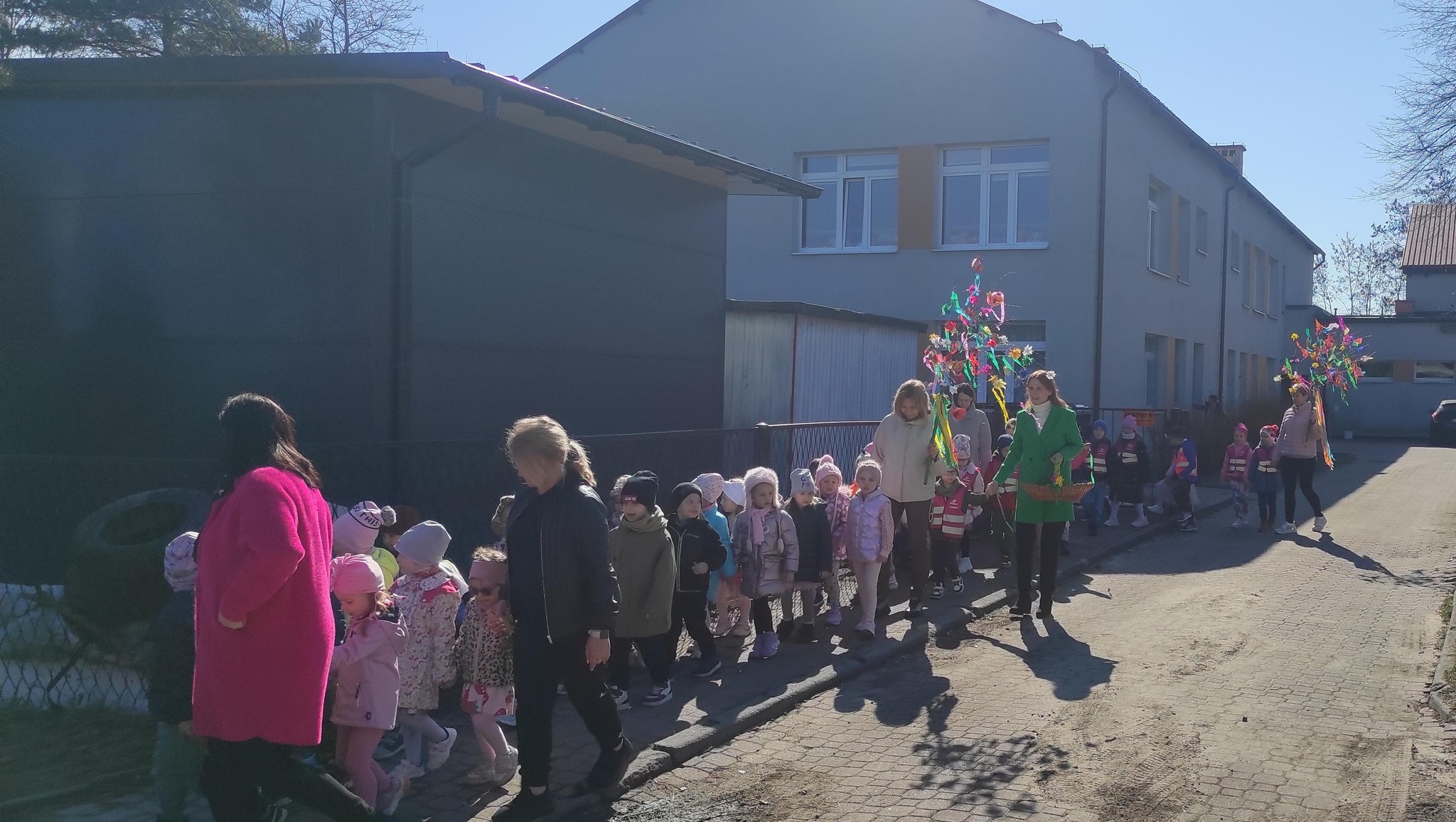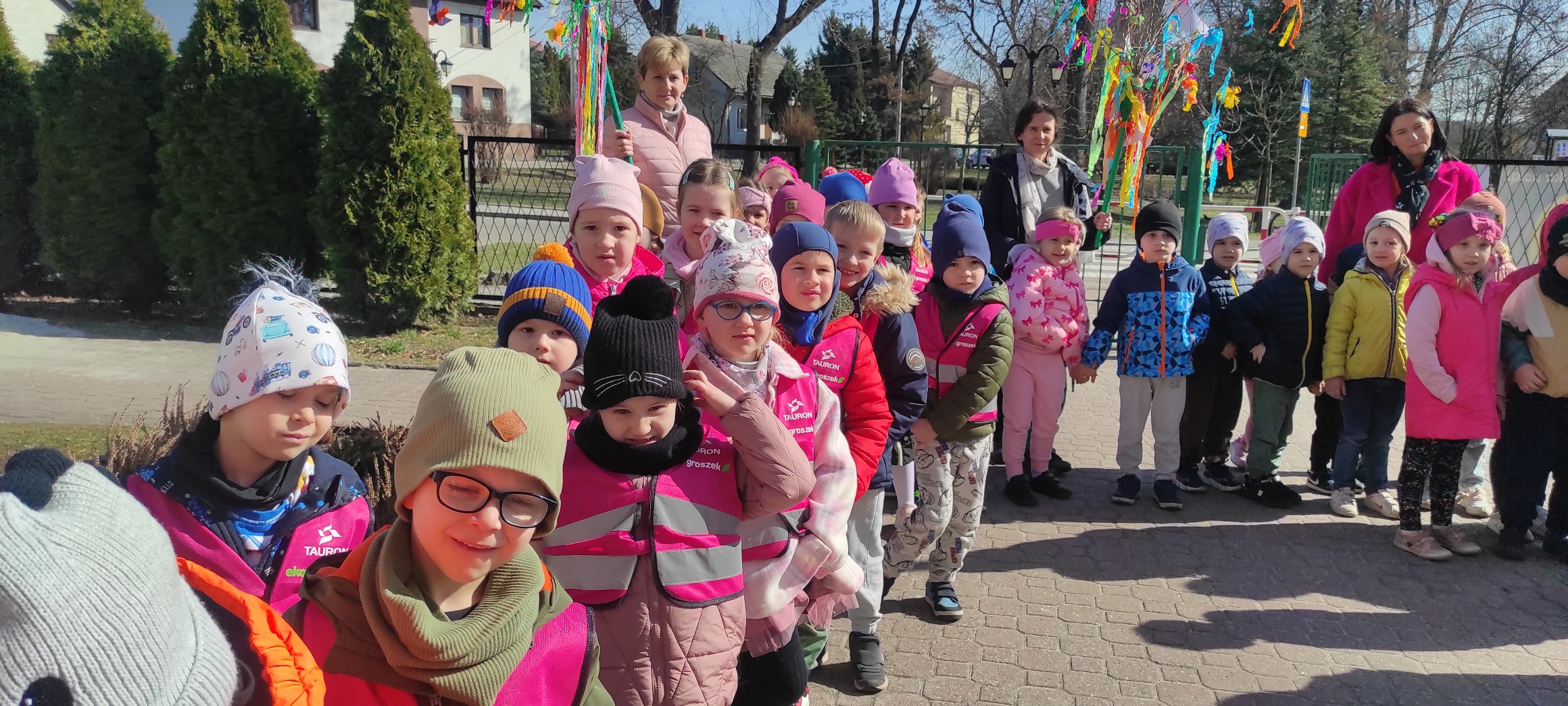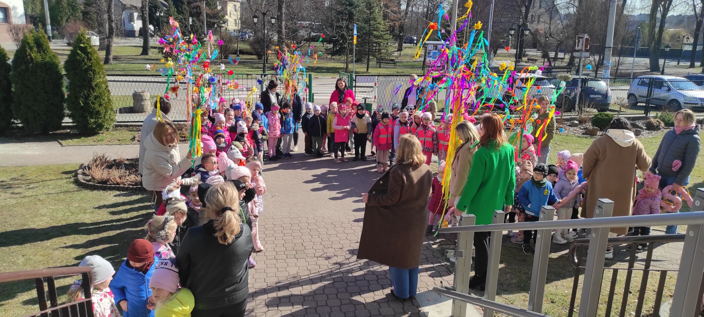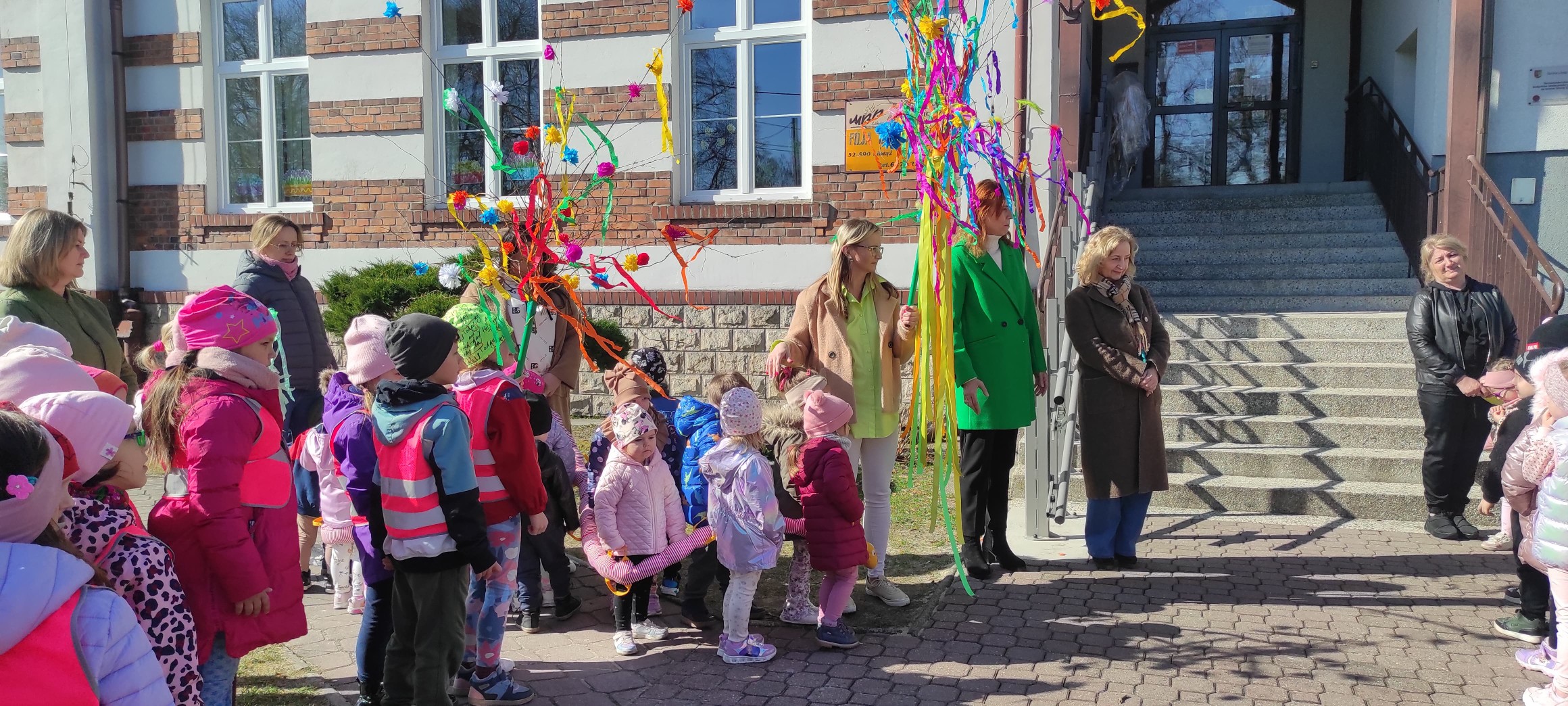piątek w naszym przedszkolu odbył się wspaniały, wiosenny pochód z gaikiem 🎉 Dzieci, z uśmiechami na twarzach, niosły kolorowe gałązki ozdobione wstążkami i kwiatami, witając nową porę roku w najbardziej radosny sposób! 🌿💐 Podczas obchodu odwiedziły Szkoła Podstawowa nr 2 im. Bł. Jana Pawła II w Libiążu , gdzie zostały serdecznie powitane przez Panią Dyrektor.