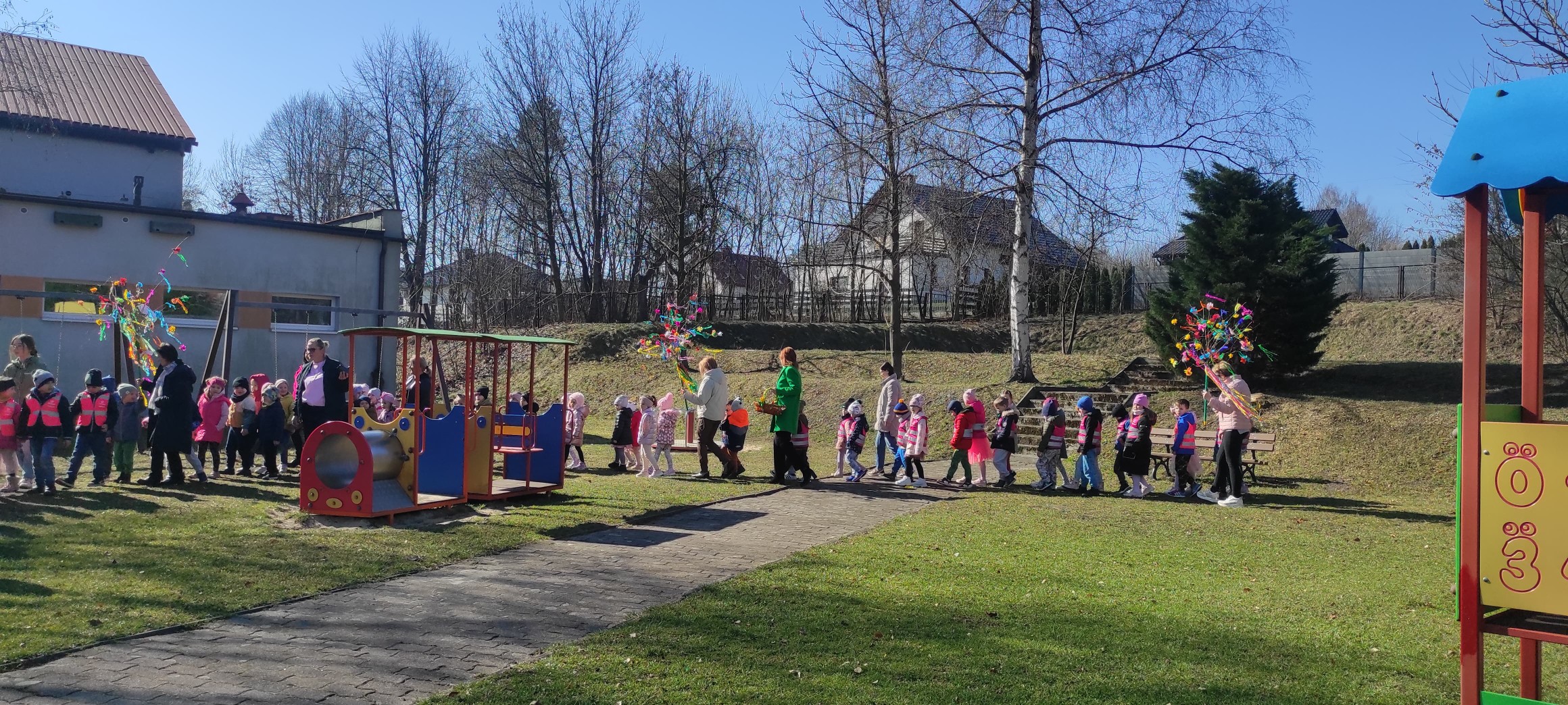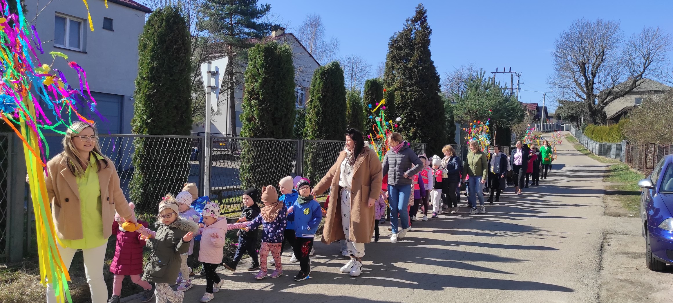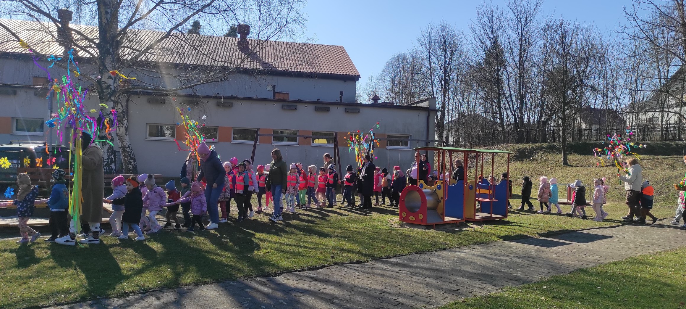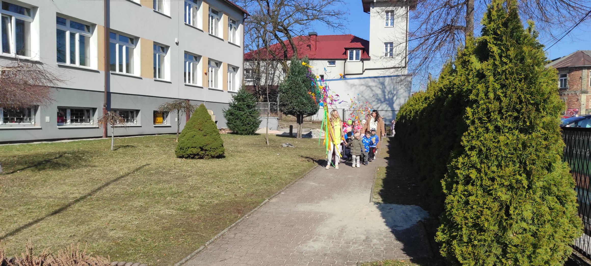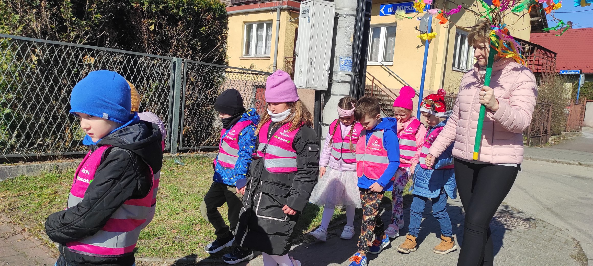piątek w naszym przedszkolu odbył się wspaniały, wiosenny pochód z gaikiem 🎉 Dzieci, z uśmiechami na twarzach, niosły kolorowe gałązki ozdobione wstążkami i kwiatami, witając nową porę roku w najbardziej radosny sposób! 🌿💐 Podczas obchodu odwiedziły Szkoła Podstawowa nr 2 im. Bł. Jana Pawła II w Libiążu , gdzie zostały serdecznie powitane przez Panią Dyrektor.