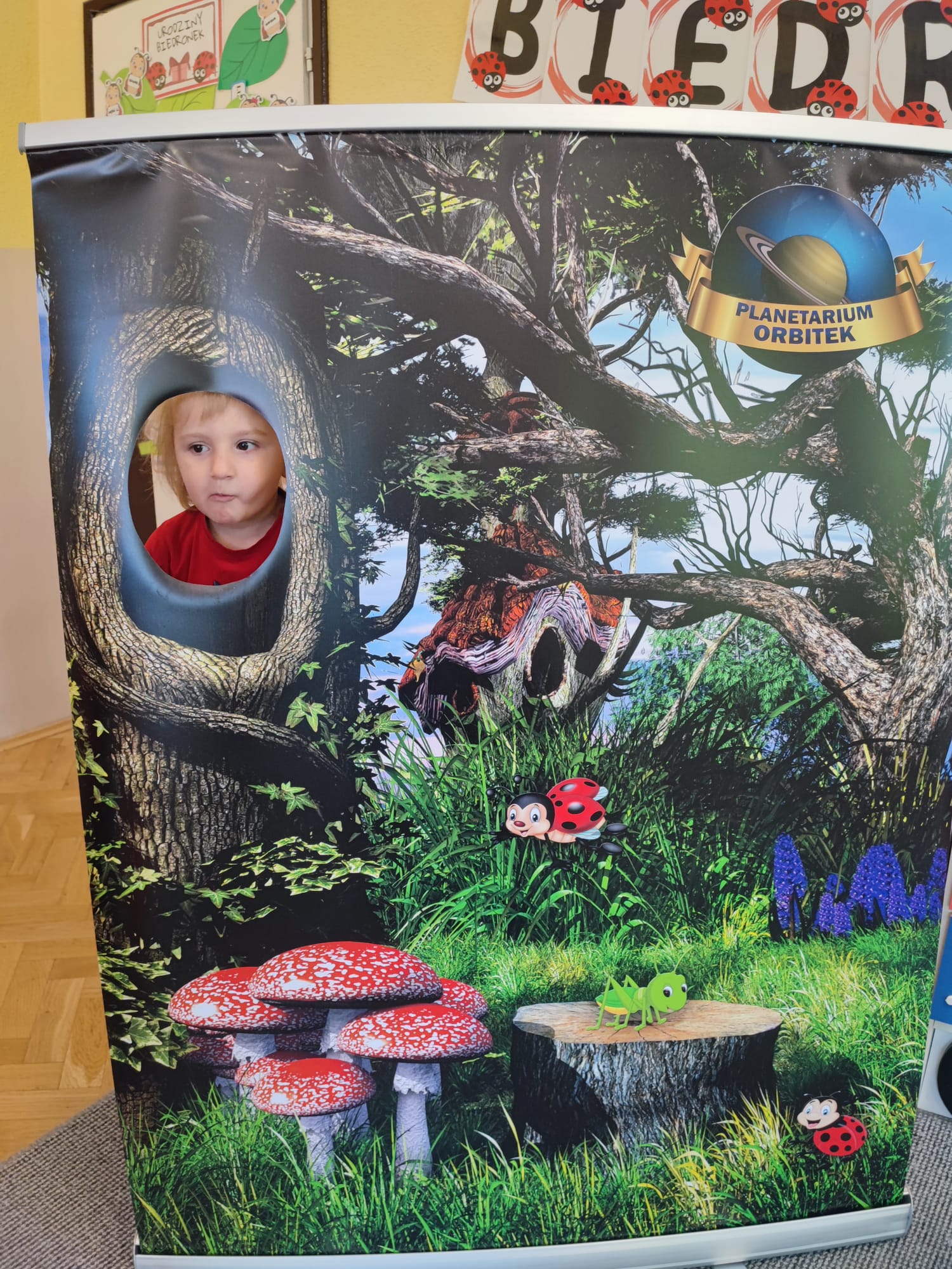 W ubiegłym tygodniu wszystkie dzieci z naszego przedszkola brały udział w planetarium Orbitek – Życie Drzew – w przyrodniczej opowieści. Była to przepiękna opowieść przyrodnicza w systemie wyświetlania obrazu dookoła głowy dzieci. W animowanym filmie Życie Drzew biedronka o nazwie „Dolores” i dziwaczny świetlik zwany „Mike” zabrali przedszkolaków w pełną przygód podróż do cudownego świata drzew. Na ich wycieczce te dwa zabawne owady omawiają przyrodę dookoła nich, a przy okazji bawią się i w zabawny sposób zdradzają nam różne sekrety przyrody.
