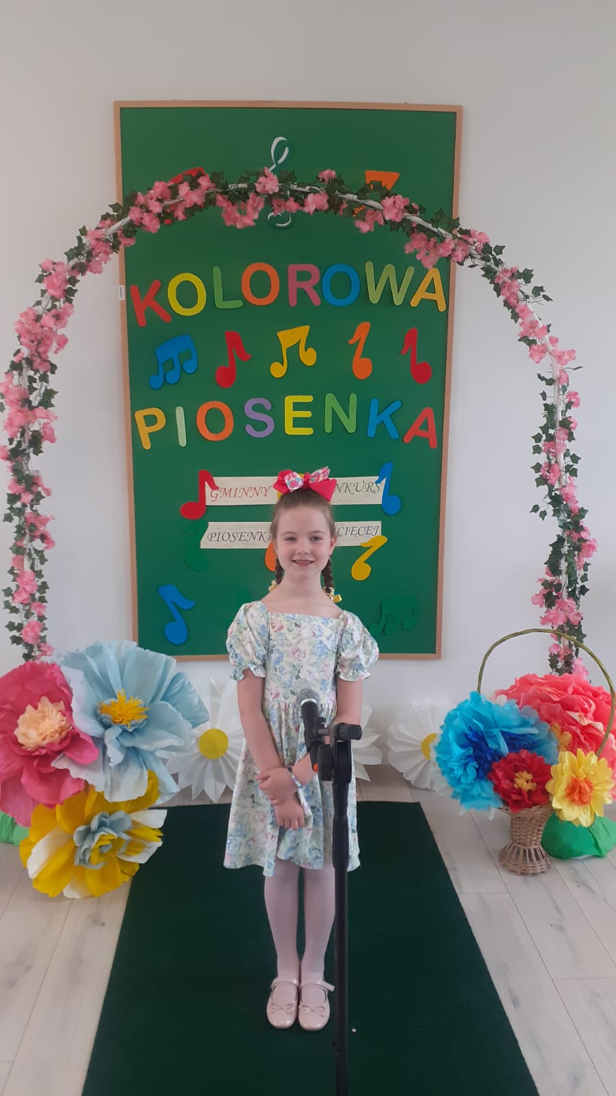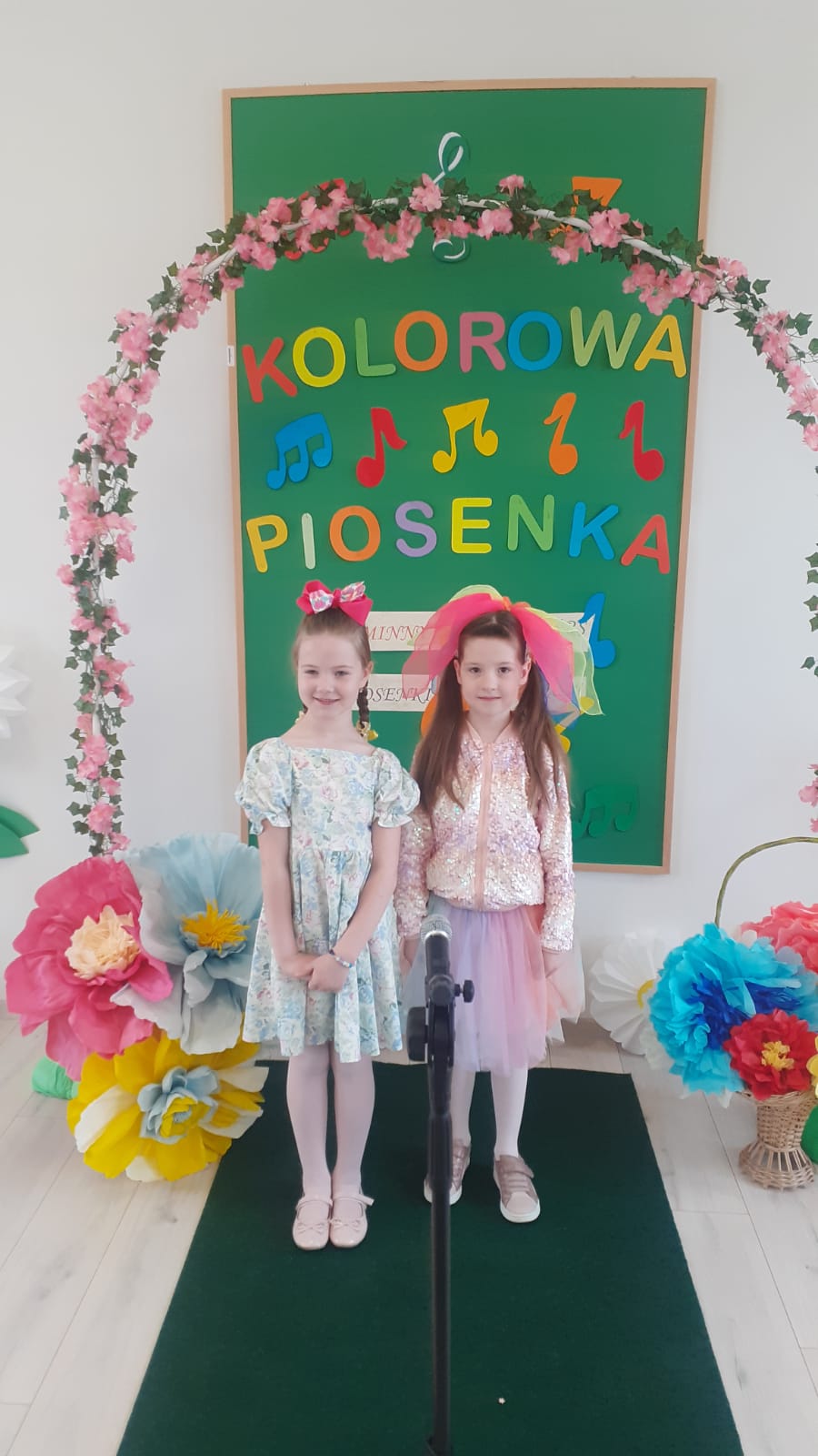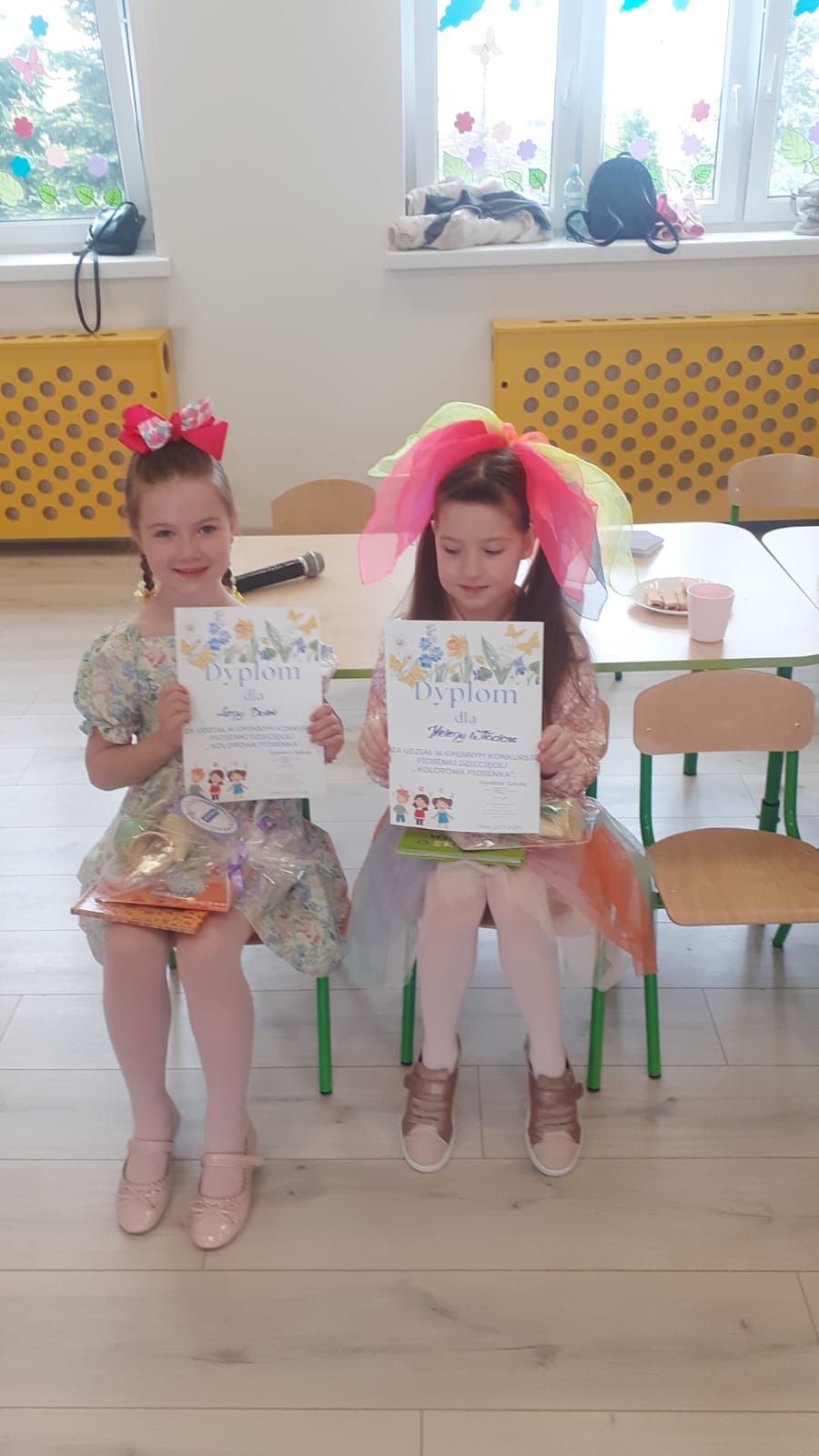 Dziewczynki z grupy Jeżyków- Helenka Władarz i Lena Bolek brały udział w Gminnym Konkursie Piosenki Dziecięcej “Kolorowa Piosenka”. Za udział wszystkie dzieci dostały dyplomy i upominki.