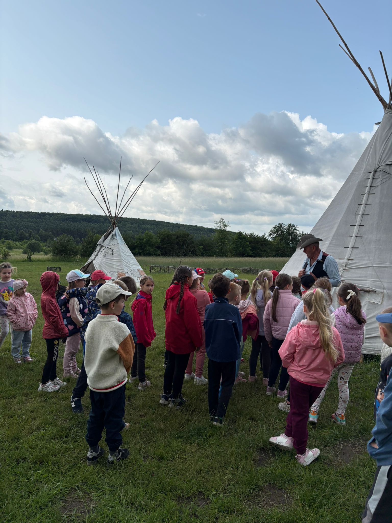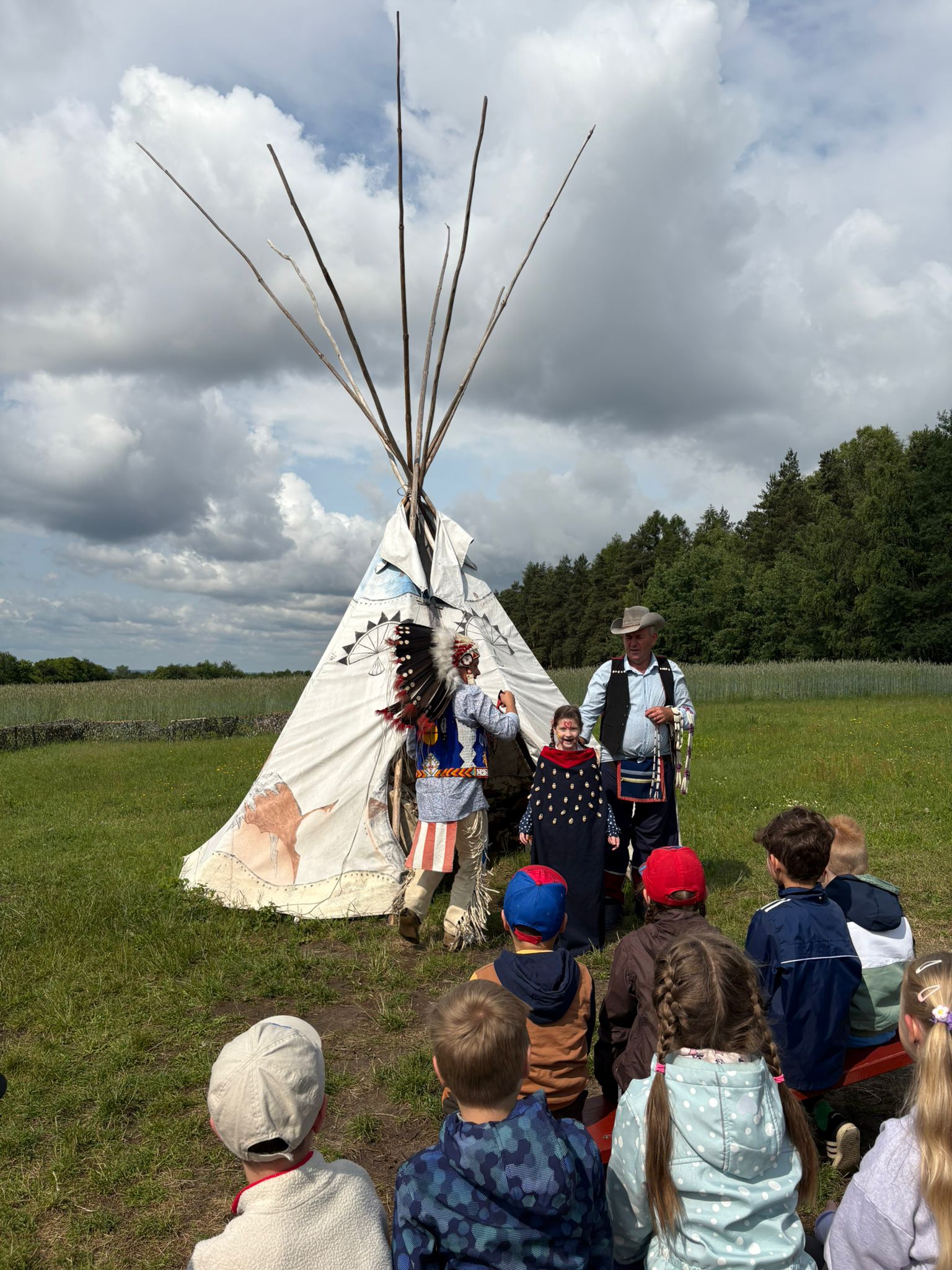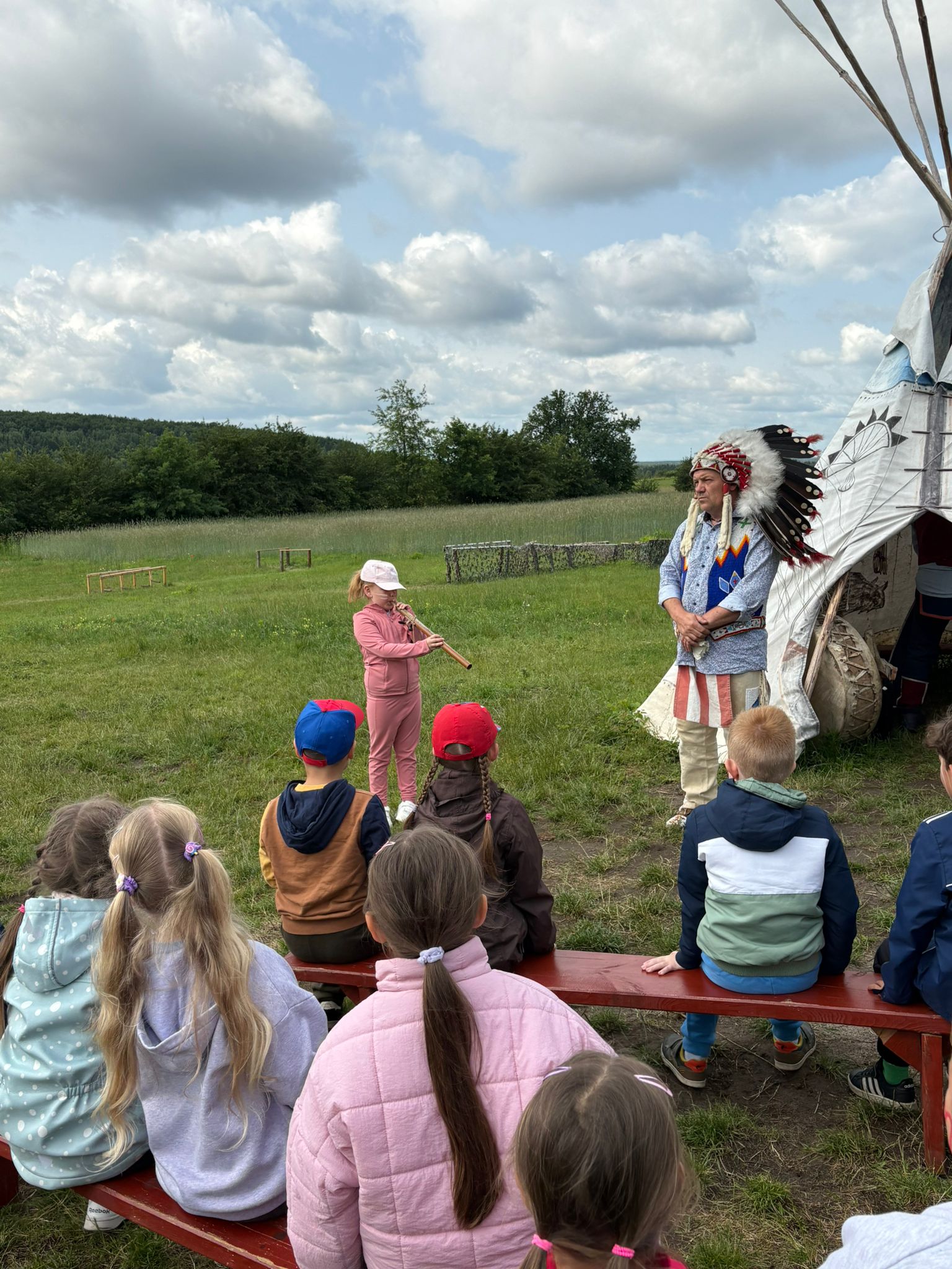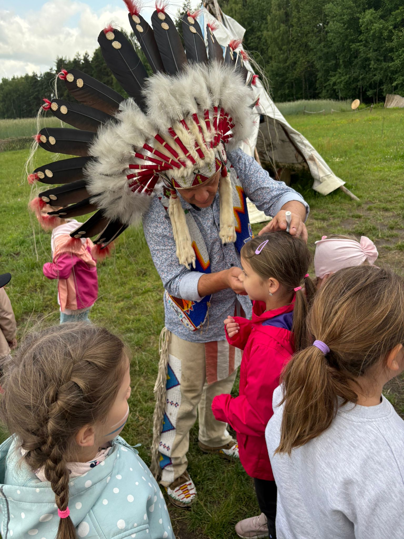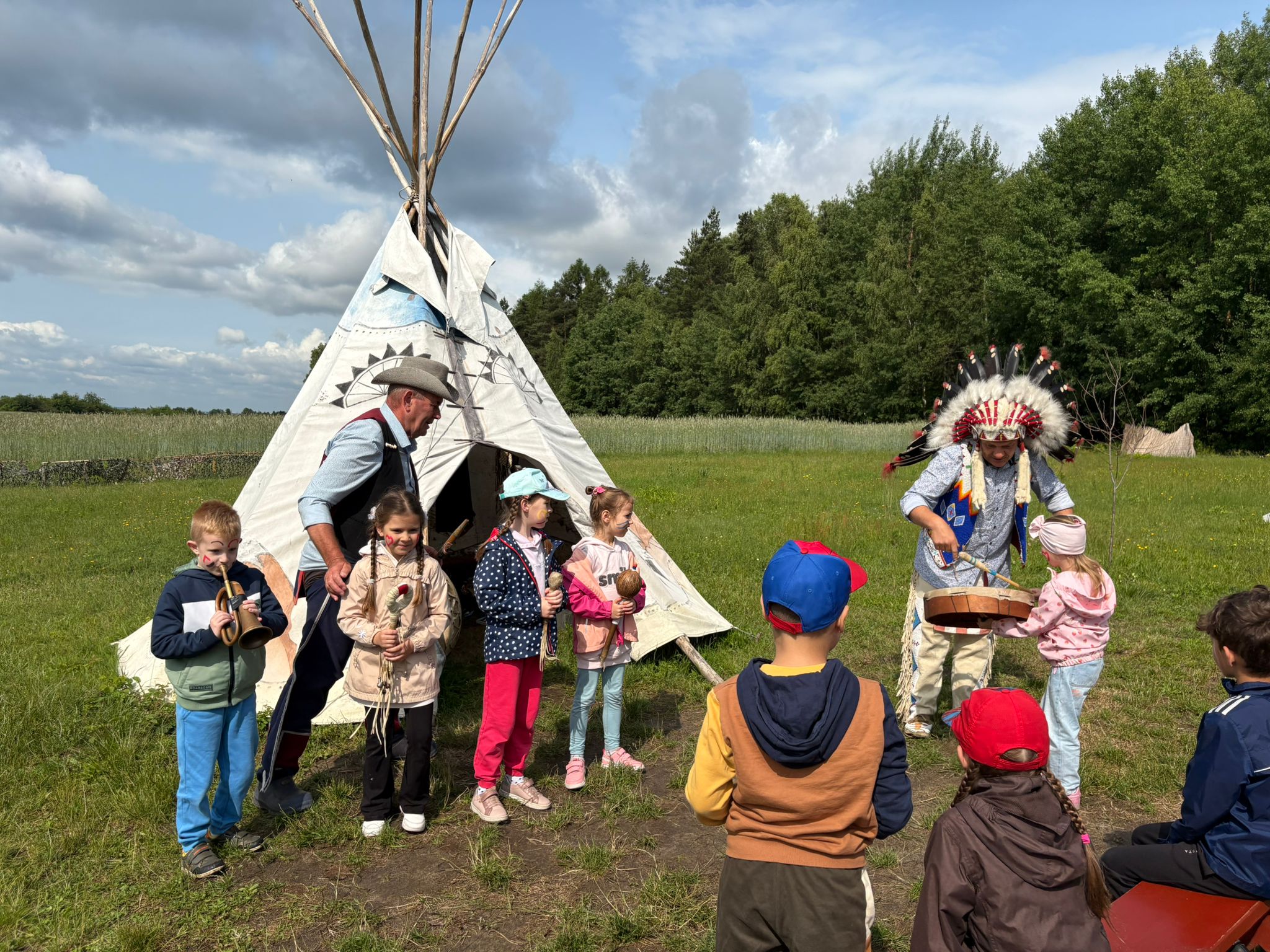 Dzieci poznały zwyczaje rdzennych mieszkańców Ameryki, nauczyły się rozpoznawać symbole plemienne, zobaczyły, jak wygląda tipi, a nawet spróbowały swoich sił w indiańskich tańcach i zabawach ![]()