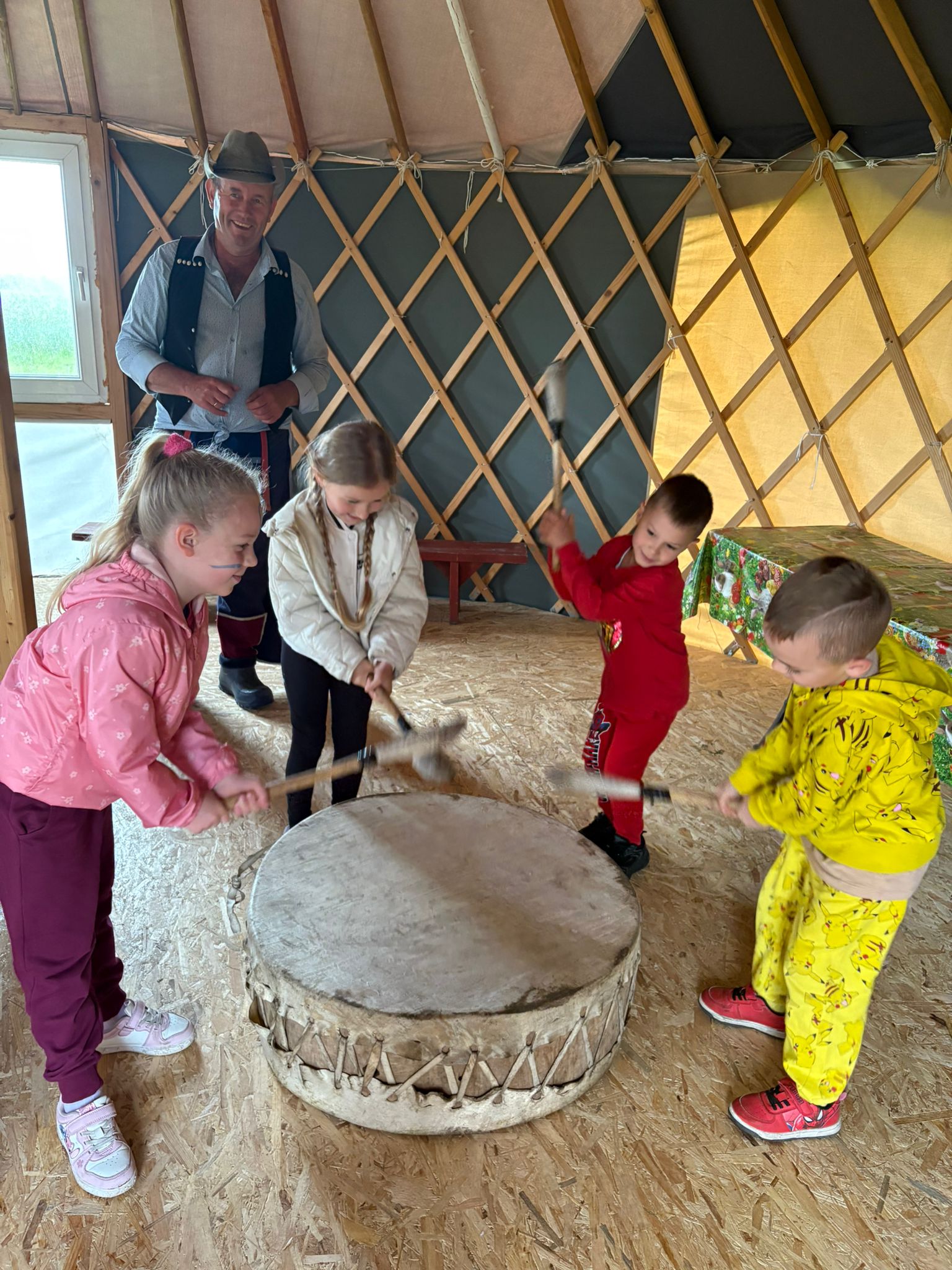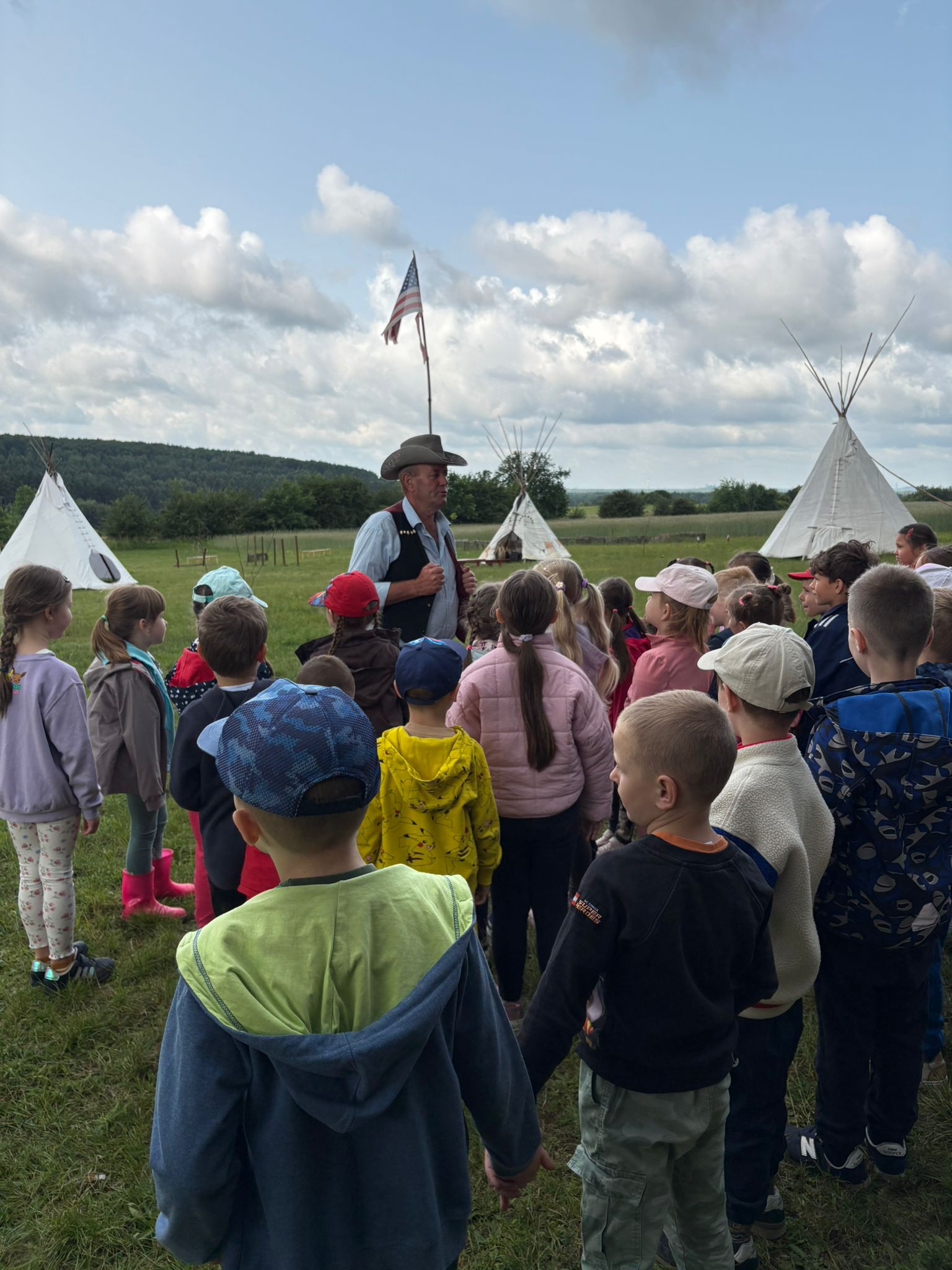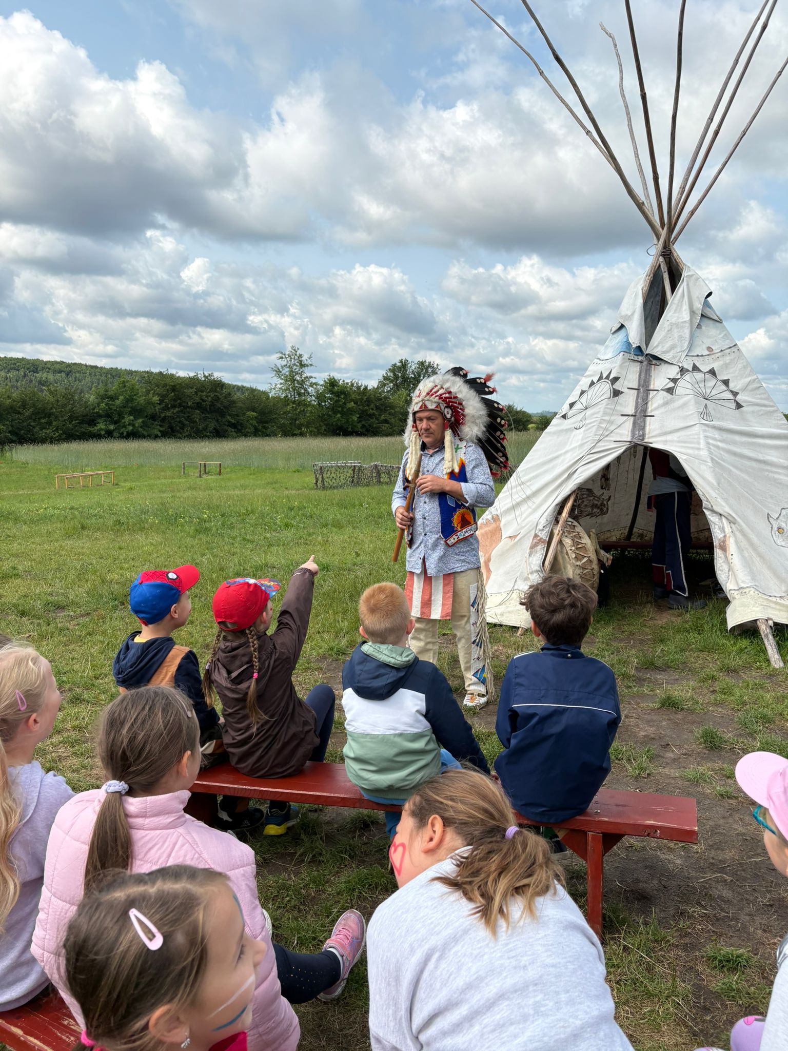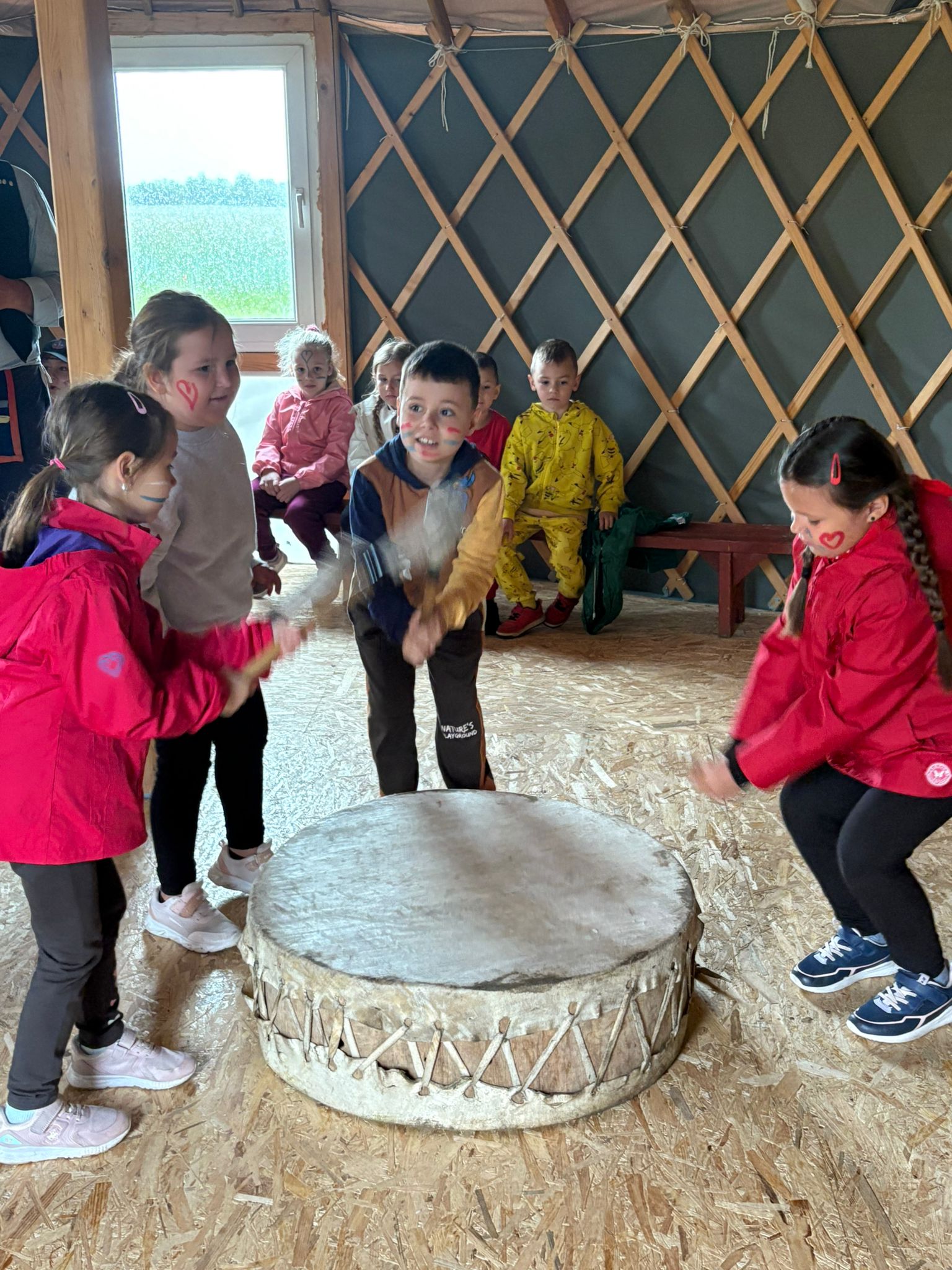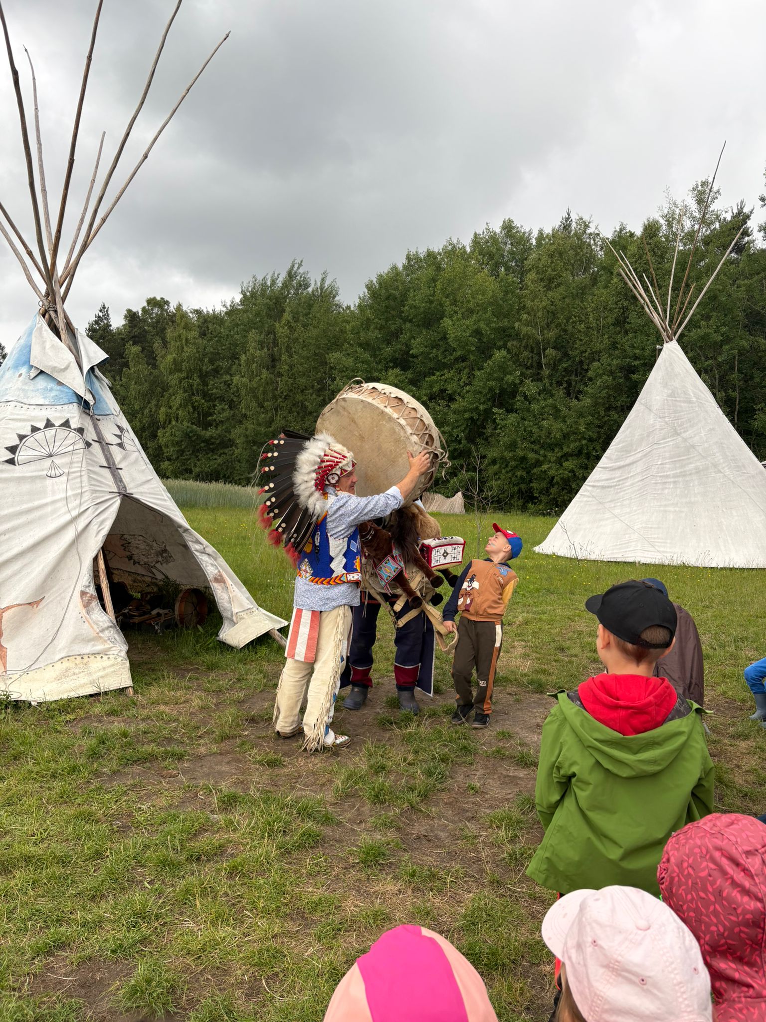 Dzieci poznały zwyczaje rdzennych mieszkańców Ameryki, nauczyły się rozpoznawać symbole plemienne, zobaczyły, jak wygląda tipi, a nawet spróbowały swoich sił w indiańskich tańcach i zabawach ![]()