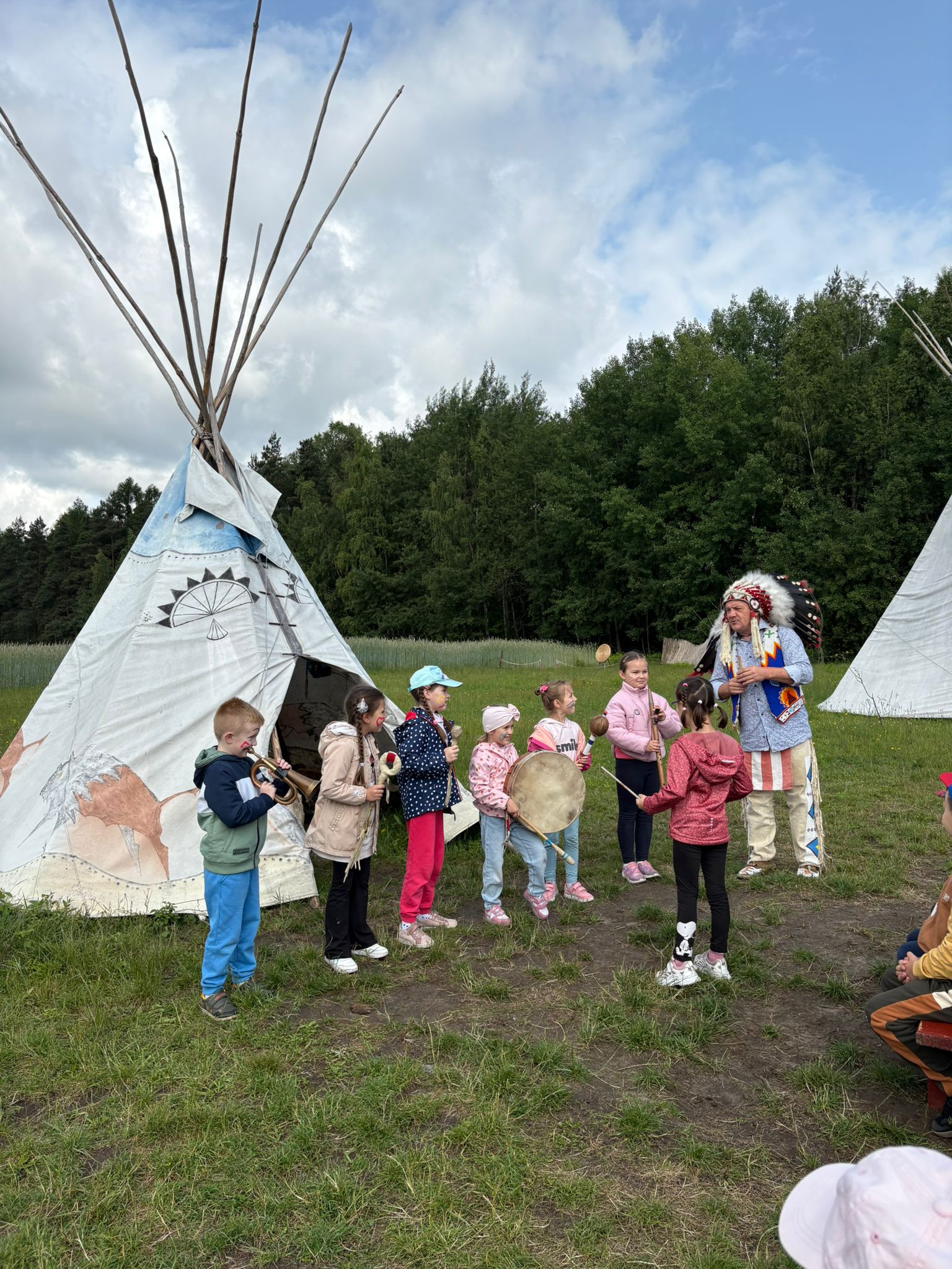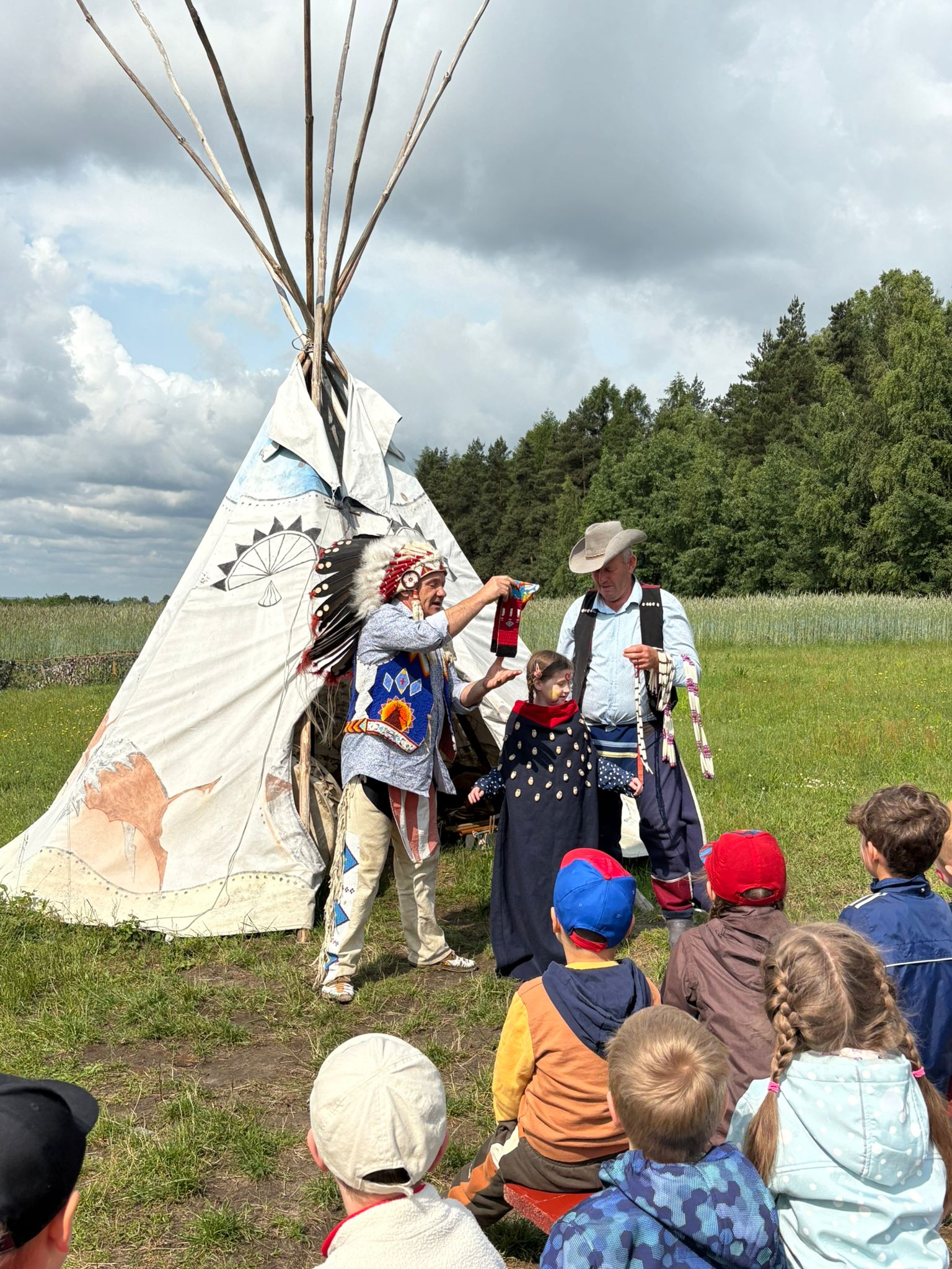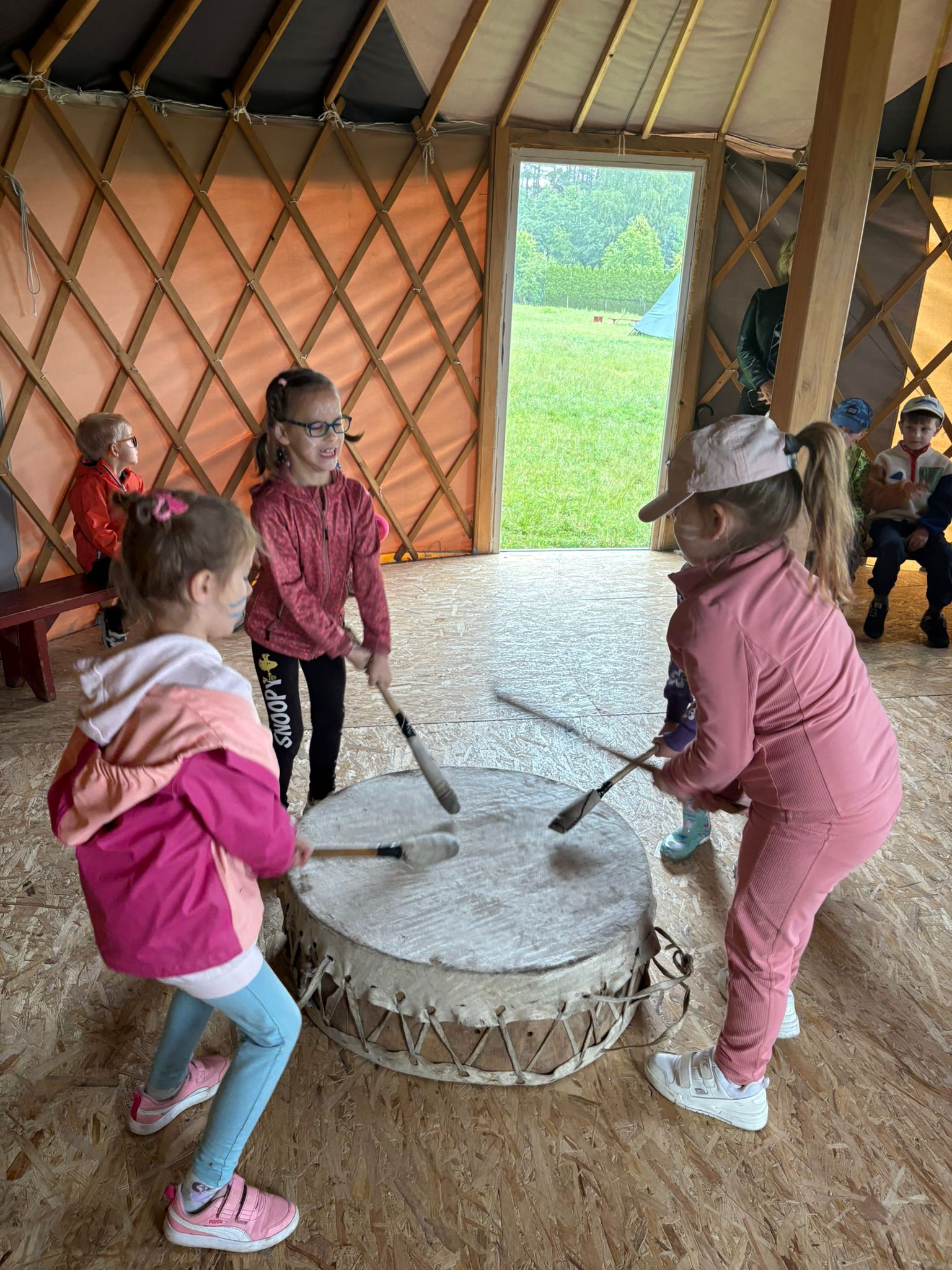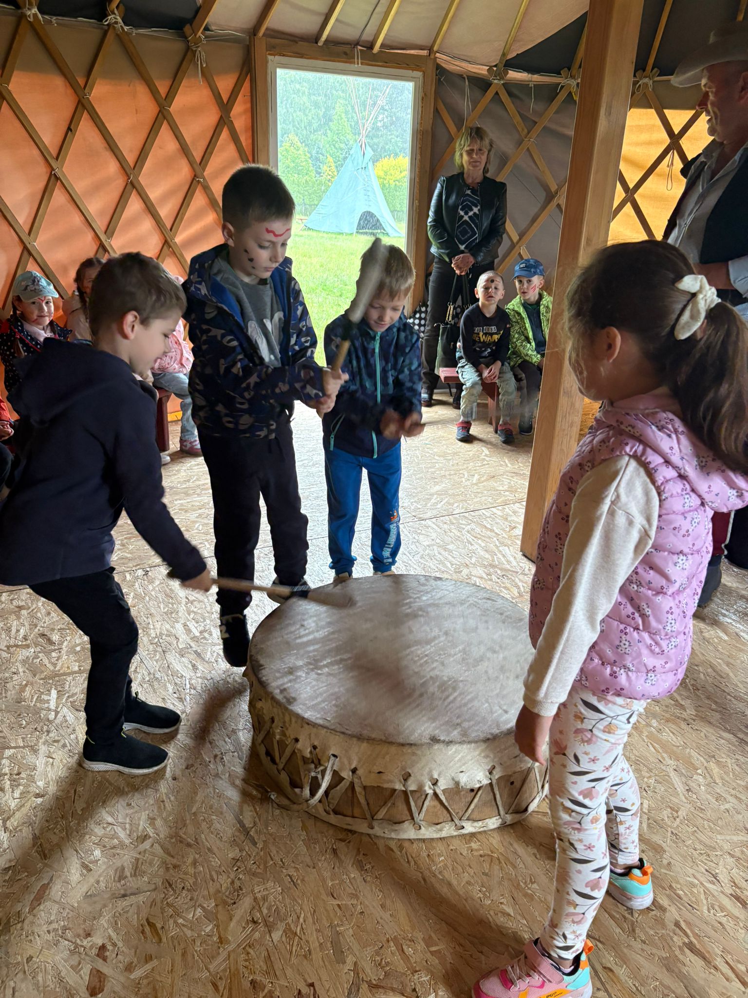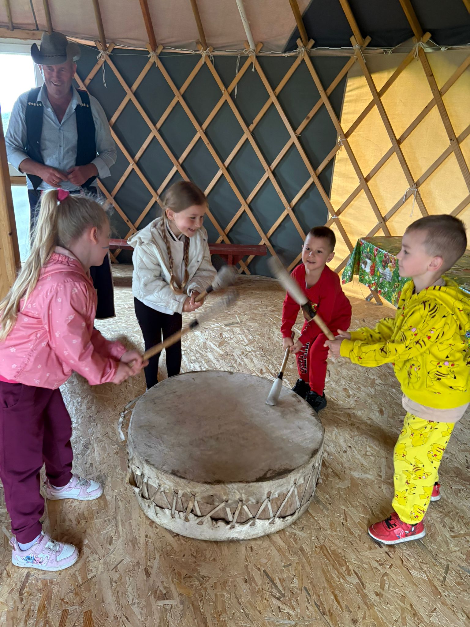 Dzieci poznały zwyczaje rdzennych mieszkańców Ameryki, nauczyły się rozpoznawać symbole plemienne, zobaczyły, jak wygląda tipi, a nawet spróbowały swoich sił w indiańskich tańcach i zabawach ![]()